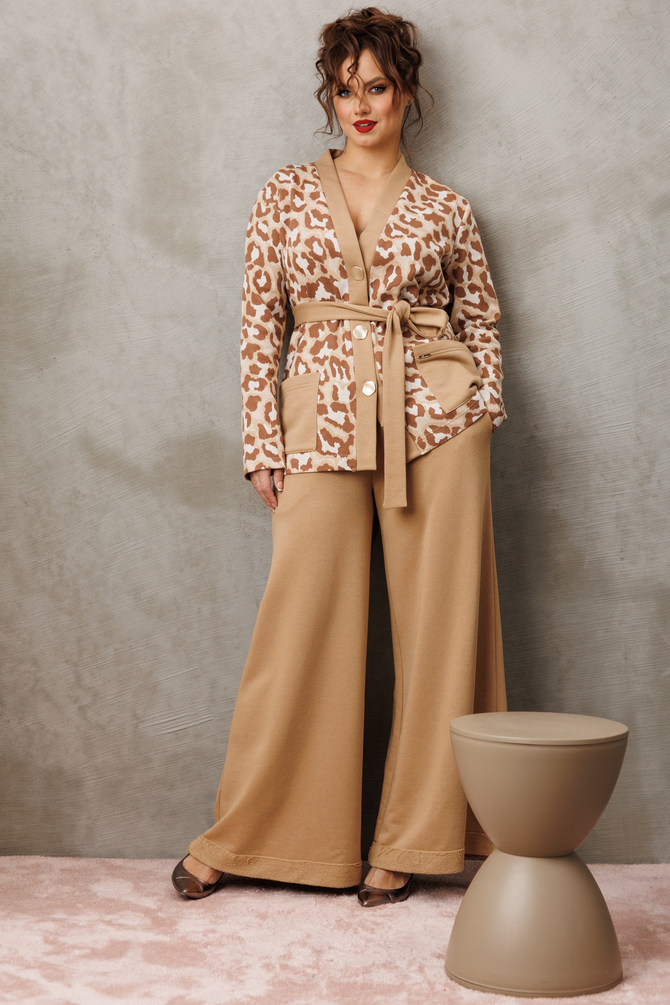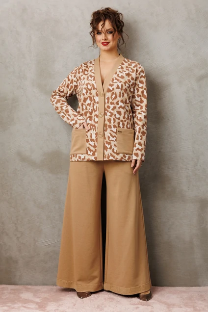 Шикарный трикотажный женский комплект от бренда Anastasia, идеальный для любого случая. Этот комплект сочетает в себе элегантность и комфорт, что делает его подходящим как для деловых встреч или прогулок. Комплект состоит из жакета и брюк. Жакет прямого силуэта. Застежка- планка с пуговицами. По полочке идут накладные карманы. Рукав втачной, одношовный. Подчеркнуть талию можно съемным поясом. В качестве декора- брендированная нашивка на кармане, перекликающаяся с золотыми пуговицами. Стильный комплект отлично подойдет для долгих прогулок или для работы, для офиса. Брюки, расширенные к низу, пояс на резинке, по бокам карманы. Отворот по низу на изнанку. Отдельный части костюма легко будут сочетаться с вещами из Вашего гардероба. Модель можно отнести к стилю кэжуал. Костюм можно носить с туфлями, кроссовками или ботинками. Обязательно добавьте наш бренд в избранное и следите за новинками, распродажами, скидками и акциями! Хороших покупок от «Анастасия». Длина (по спинке):(50-54)- 68см, (56-60)-71 см. Длина рукава: (50-60)- 60см. Длина брюк: (50-54):- 101см, (56-60)- 104см.