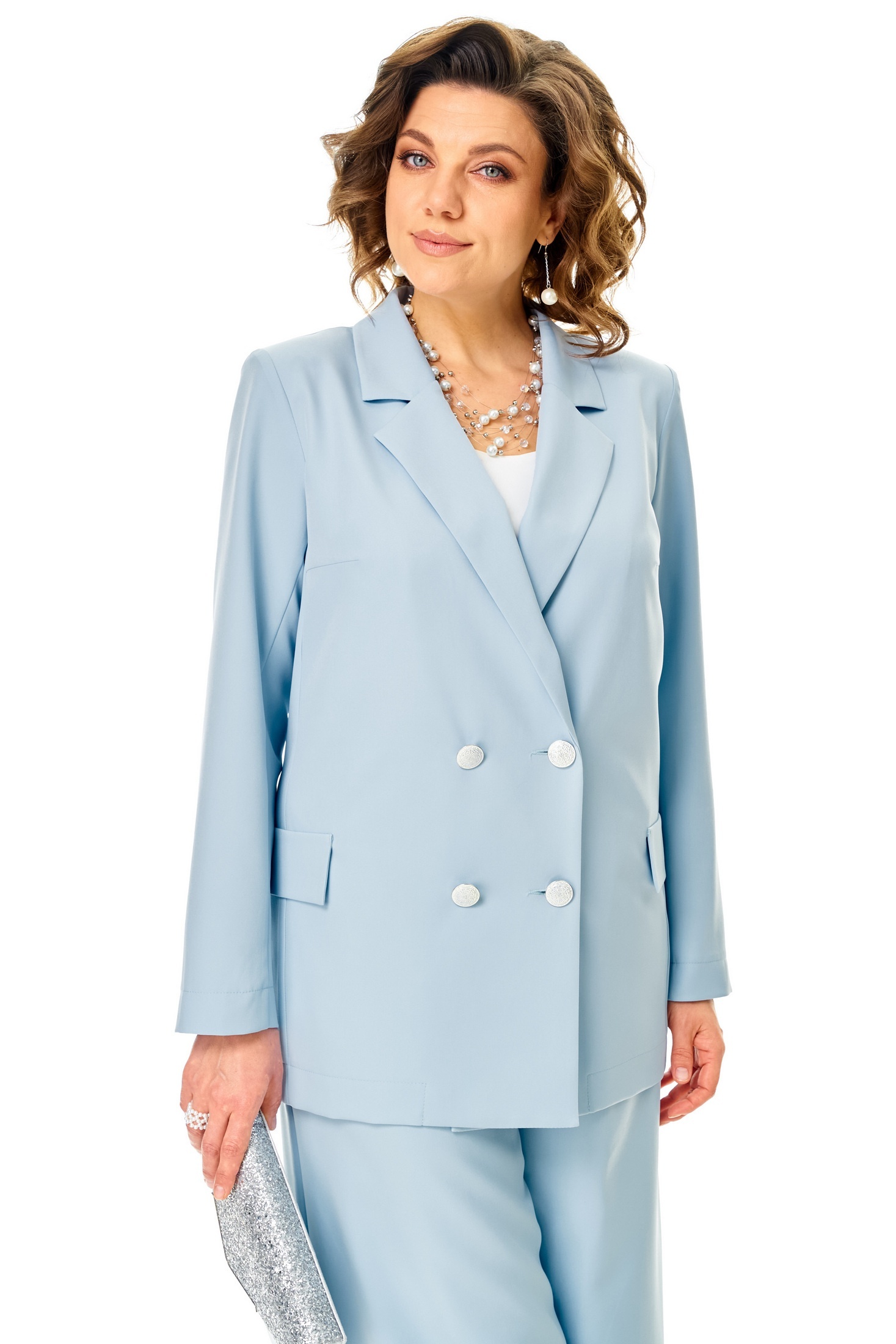 Костюм брючный 1337 холодный голубой Anastasia