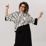 Жакет с архитектурным кроем, принтованной подкладкой и функциональными деталями, такими как карманы с клапаном, добавляет ему изысканности и практичности. Брюки-палаццо с высокой посадкой, мягкими складками и боковыми карманами создают элегантный и комфортный силуэт, который подчеркивает фигуру и подходит для разных сезонов.