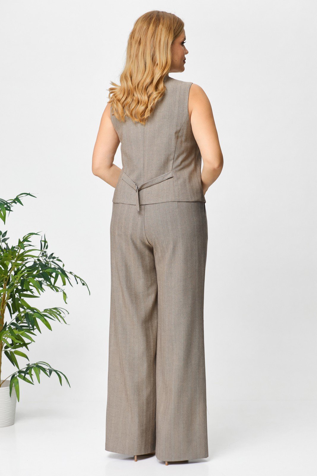 Этот костюм - это шик и универсальность. Жакет бойфренда сочетает в себе элегантность и комфорт, прямые брюки придают вам стройность и уверенность, а жилет завершает образ, добавляя нотку роскоши. Все это - актуальная классика, которая никогда не выйдет из моды.