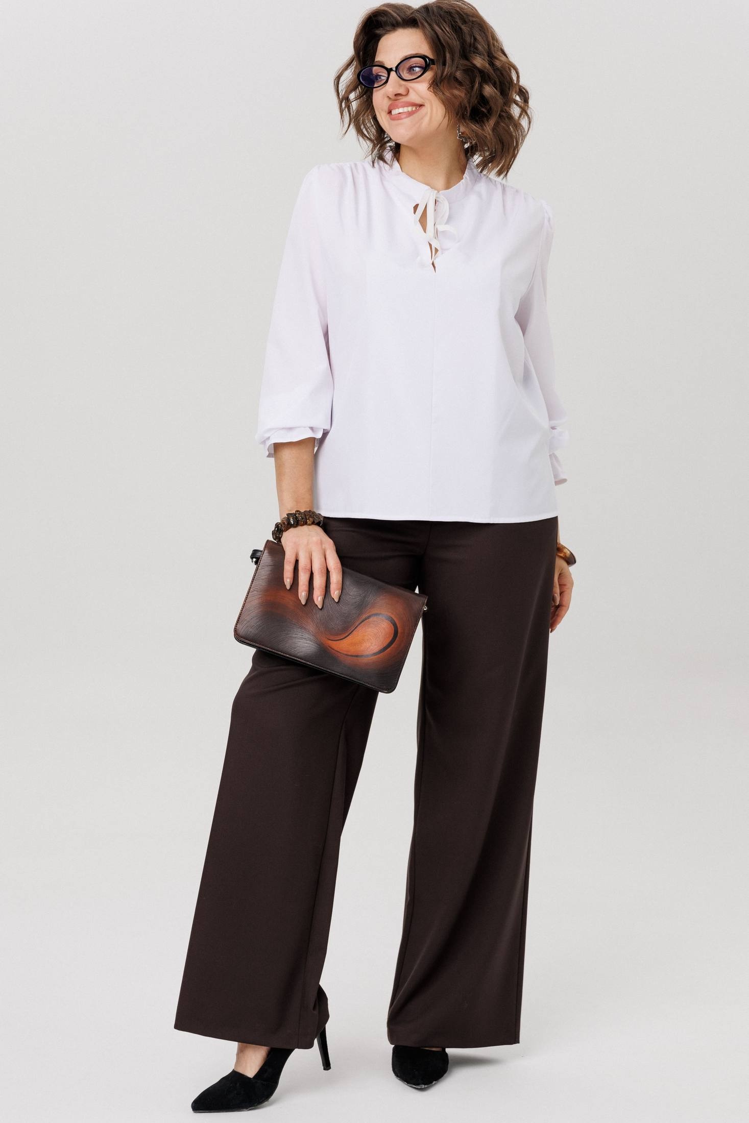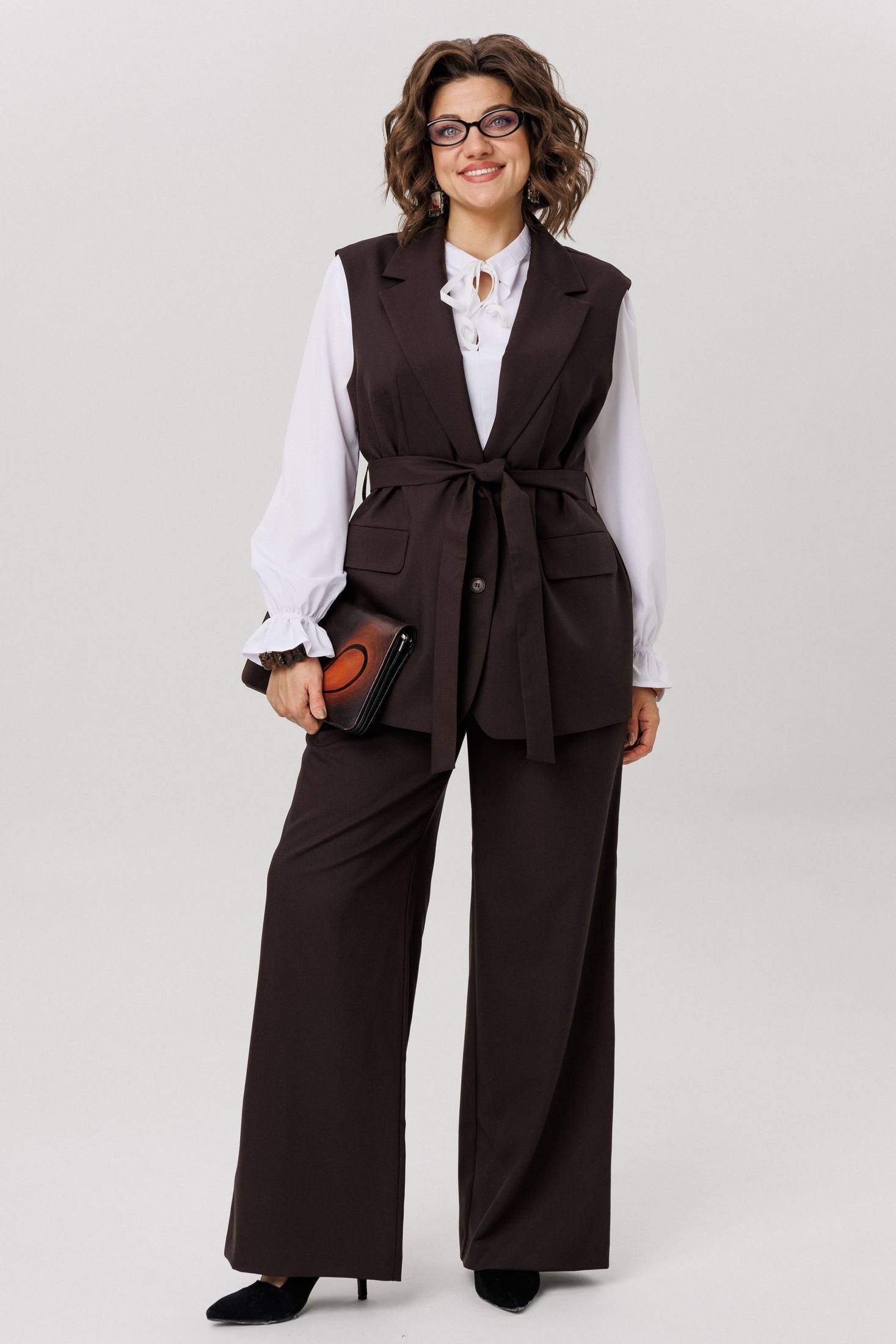 На модели составлен образ с блузой 1281. Также, можно приобрести отдельно жилет 1502 и брюки 1702.