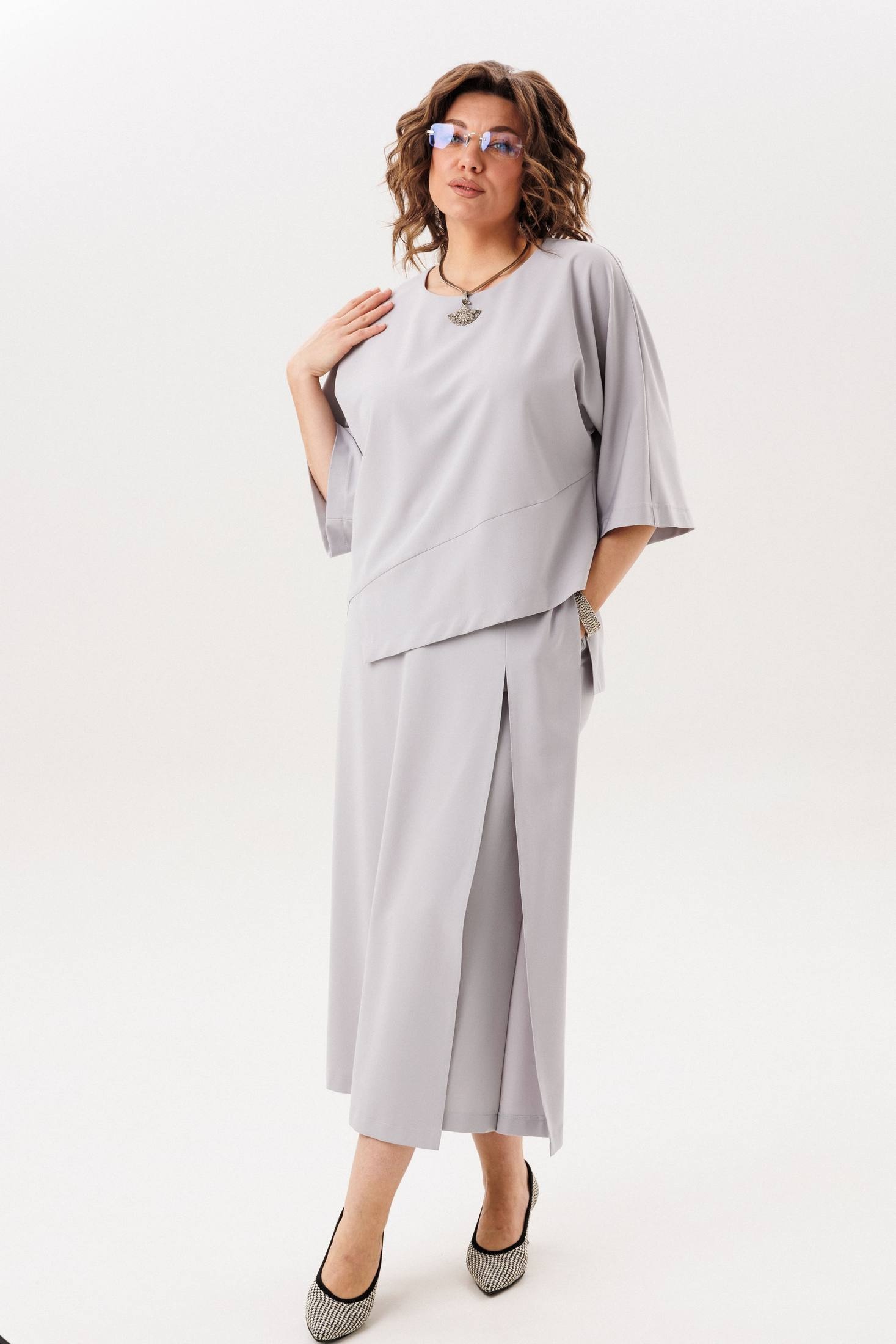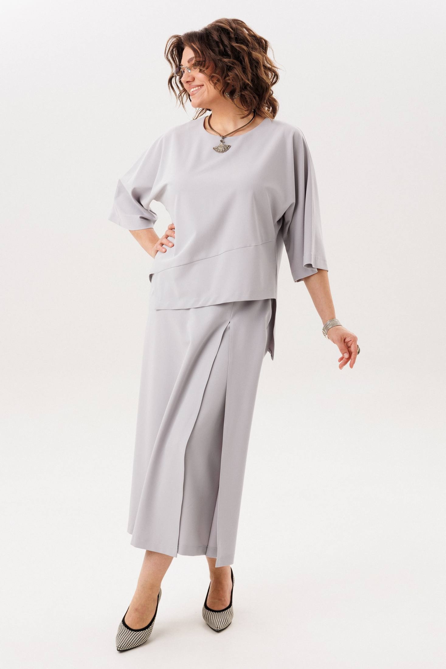 - Серые брючные костюмы больших размеров