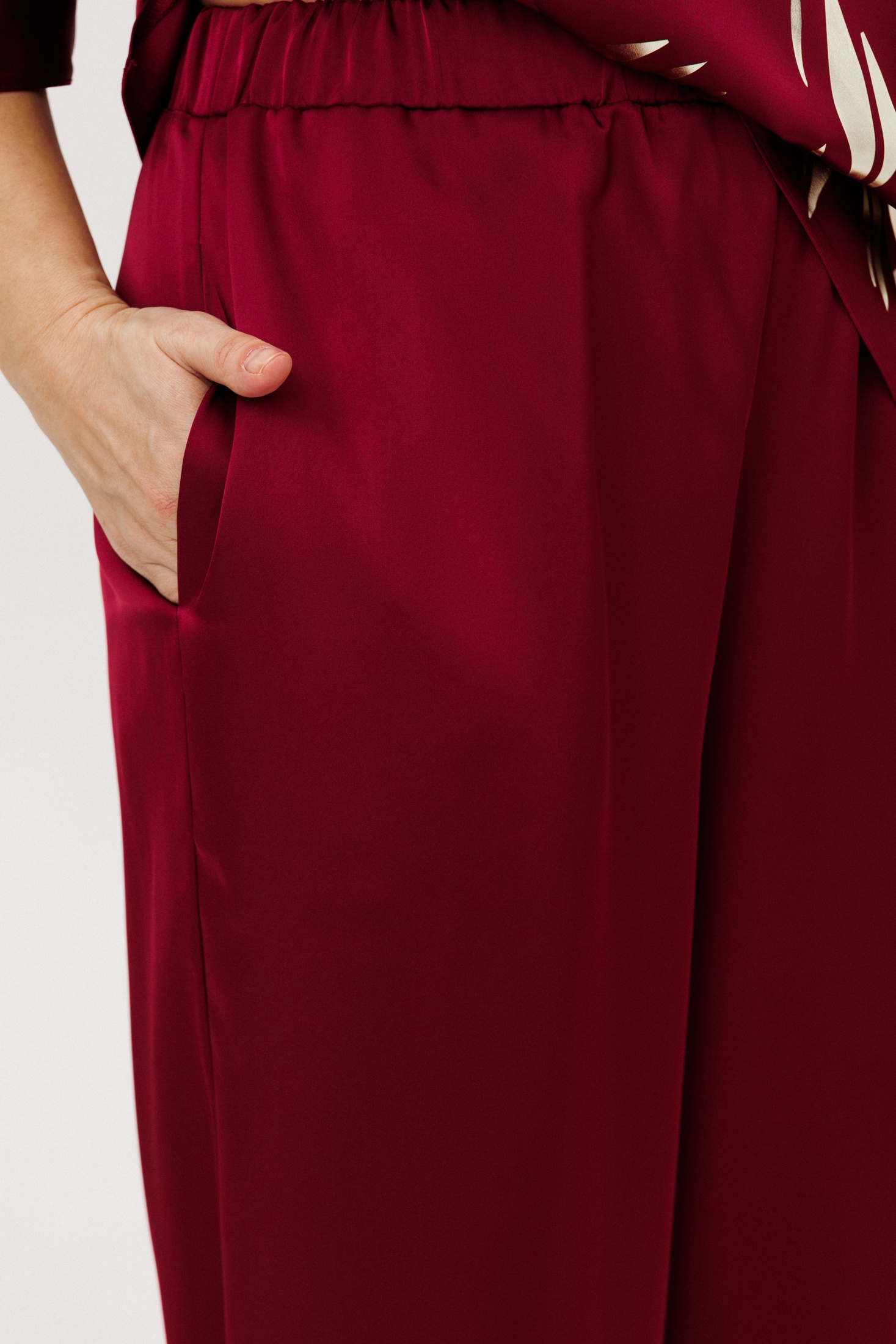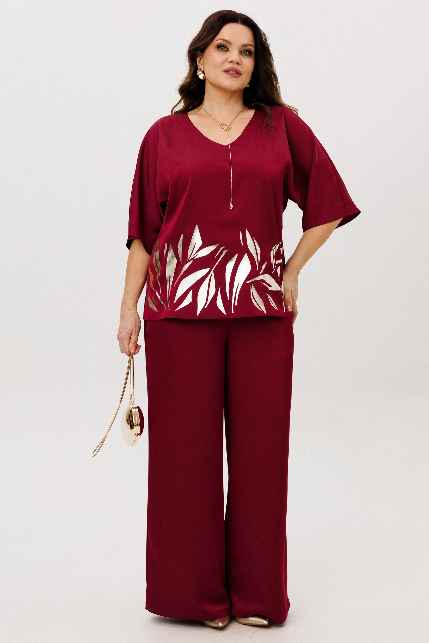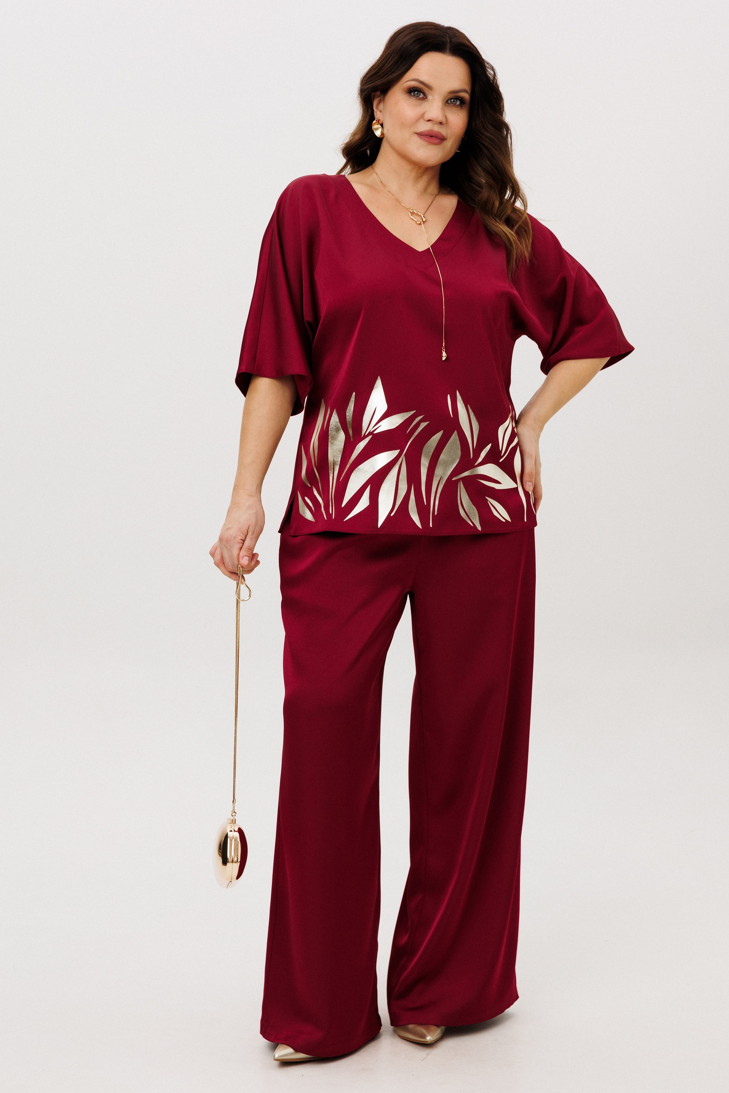 Костюм брючный 6118-1 ANIDEN — это идеальный выбор для вашего гардероба. Коллекция бренда ANIDEN предлагает стильный выходной костюм из атласного материала, обеспечивающего мягкость и блеск. Брюки снабжены эластичной резинкой на поясе, что обеспечивает удобную посадку на талии. Удобные карманы в боковых швах добавляют практичности. Фасон с брюками подчеркивает современный стиль, идеально подходящий для вечерних выходов. Бордовый цвет костюма создаёт впечатляющий акцент. Рукав средней длины добавляет комфорт и универсальность. Подходит для весеннего сезона и особых случаев. Высота модели на фото 170 см.