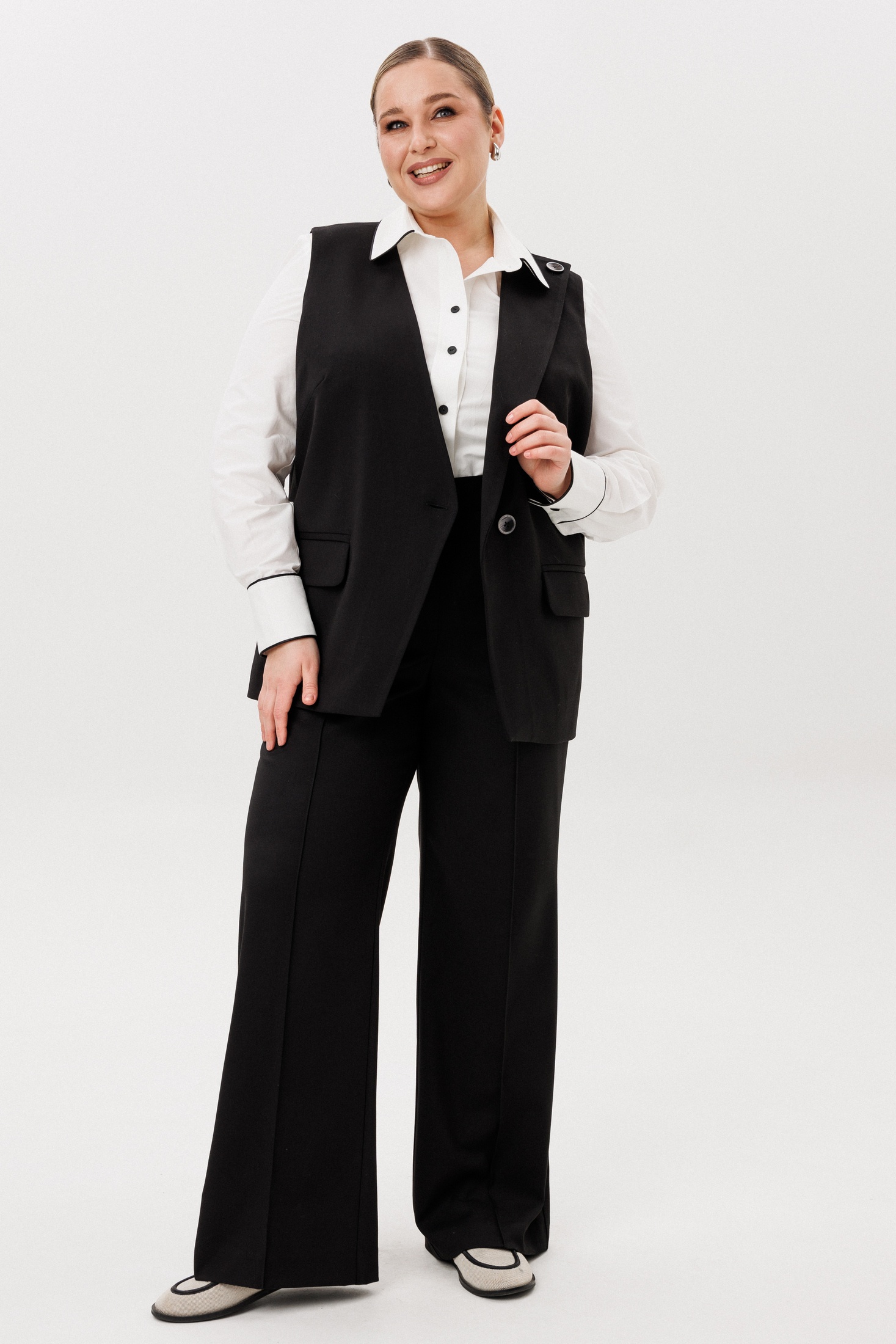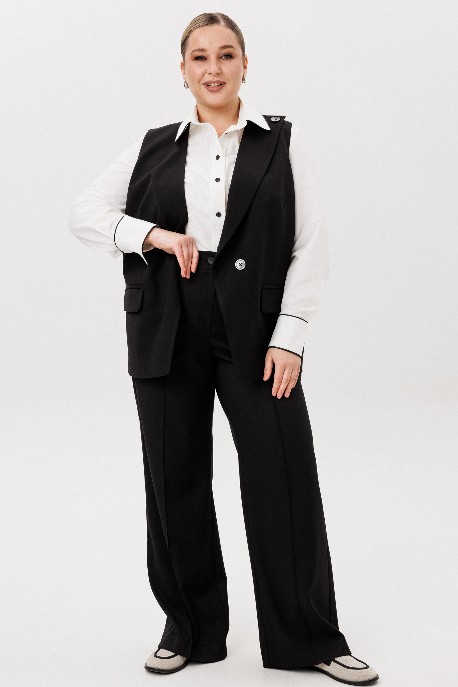 Брюки прямого кроя с декоративной строчкой на полочке создают гармоничный образ, а молния с пуговицей и боковые карманы обеспечивают удобство и функциональность. Эластичная резинка в поясе не только подстраивается под фигуру, но и добавляет свободы движений. Этот костюм отлично подходит для офисных будней и светских мероприятий, обладая универсальностью и стилем, который подчеркнет вашу индивидуальность. Выберите костюм от Ava Fashion для безупречного образа каждый день! Длина жилета-70 см. Длина брюк-110 см.