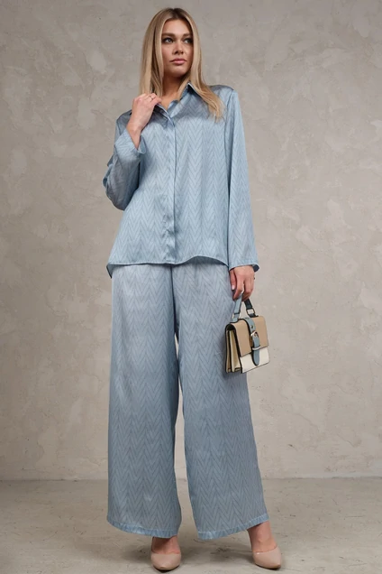 Комплект рубашка, брюки. Классический воротник, длинный рукав, застежка на пуговице. Брюки прямого кроя на резинке.