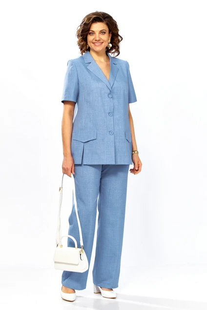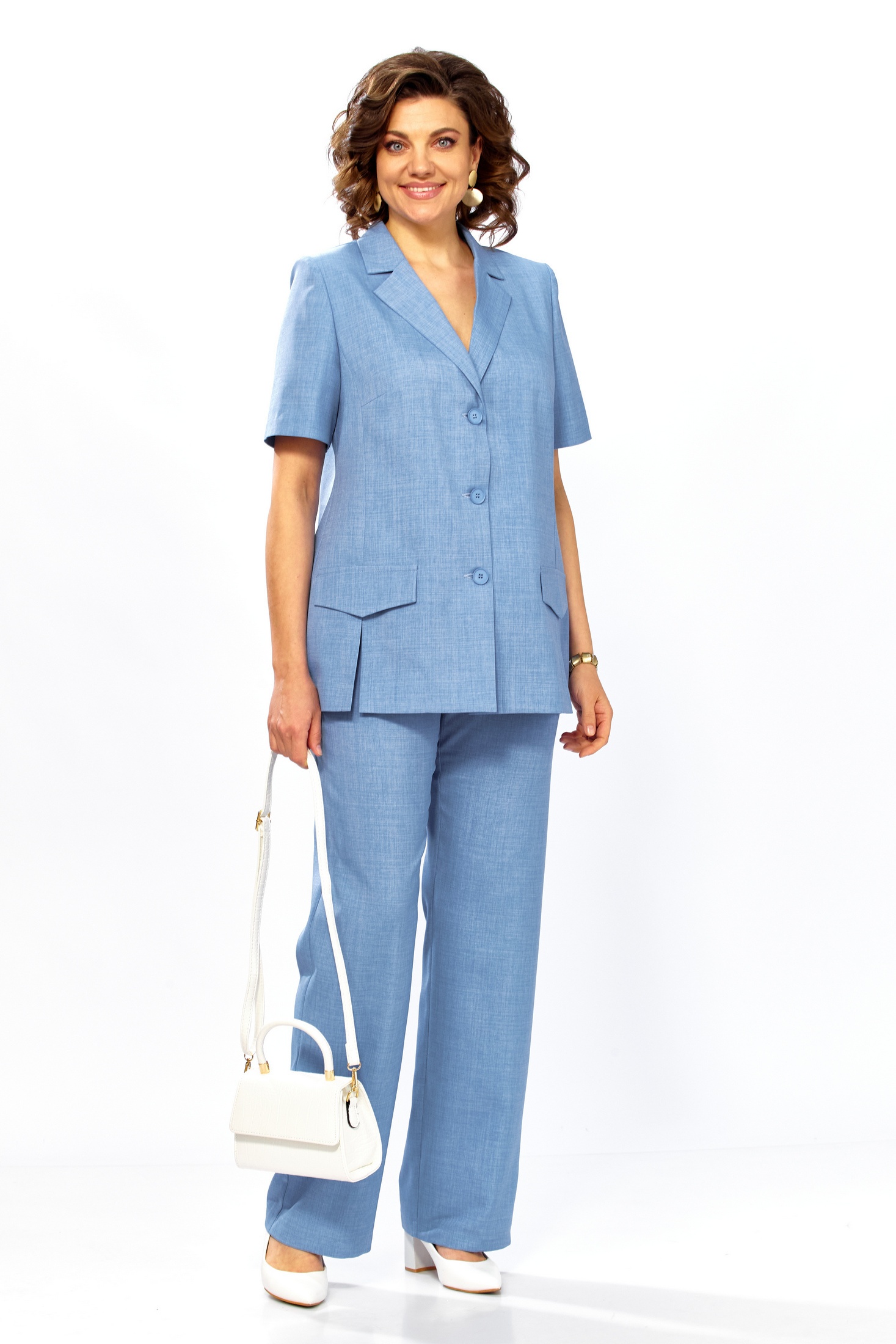 Костюм брючный 10056 AZZARA — это великолепное сочетание стиля и комфорта. Коллекция бренда AZZARA предлагает комплект, состоящий из жакета и брюк. Жакет полуприлегающего силуэта, выполненный из полиэстера и спандекса, обеспечивает свободу движений и комфорт. Дизайн жакета включает короткий втачной рукав, отложной воротник с лацканами и застежку на пуговицы. Рельефные швы и декоративные складки придают изящности. Брюки представлены в классическом прямом фасоне с эластичной тесьмой на поясе и функциональными карманами. Комплект подчеркивает деловой стиль и подходит для весенне-летнего сезона. Светло-голубой цвет костюма освежит ваш образ, делая его идеальным выбором для офиса и других повседневных мероприятий.
