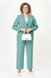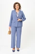 Денский трёхпредметный комплект состоит из жакета и брюк , выполненных из плательно-костюмной ткани и блузы,выполненной из атласной блузочной ткани с оригинальным дизайном.
