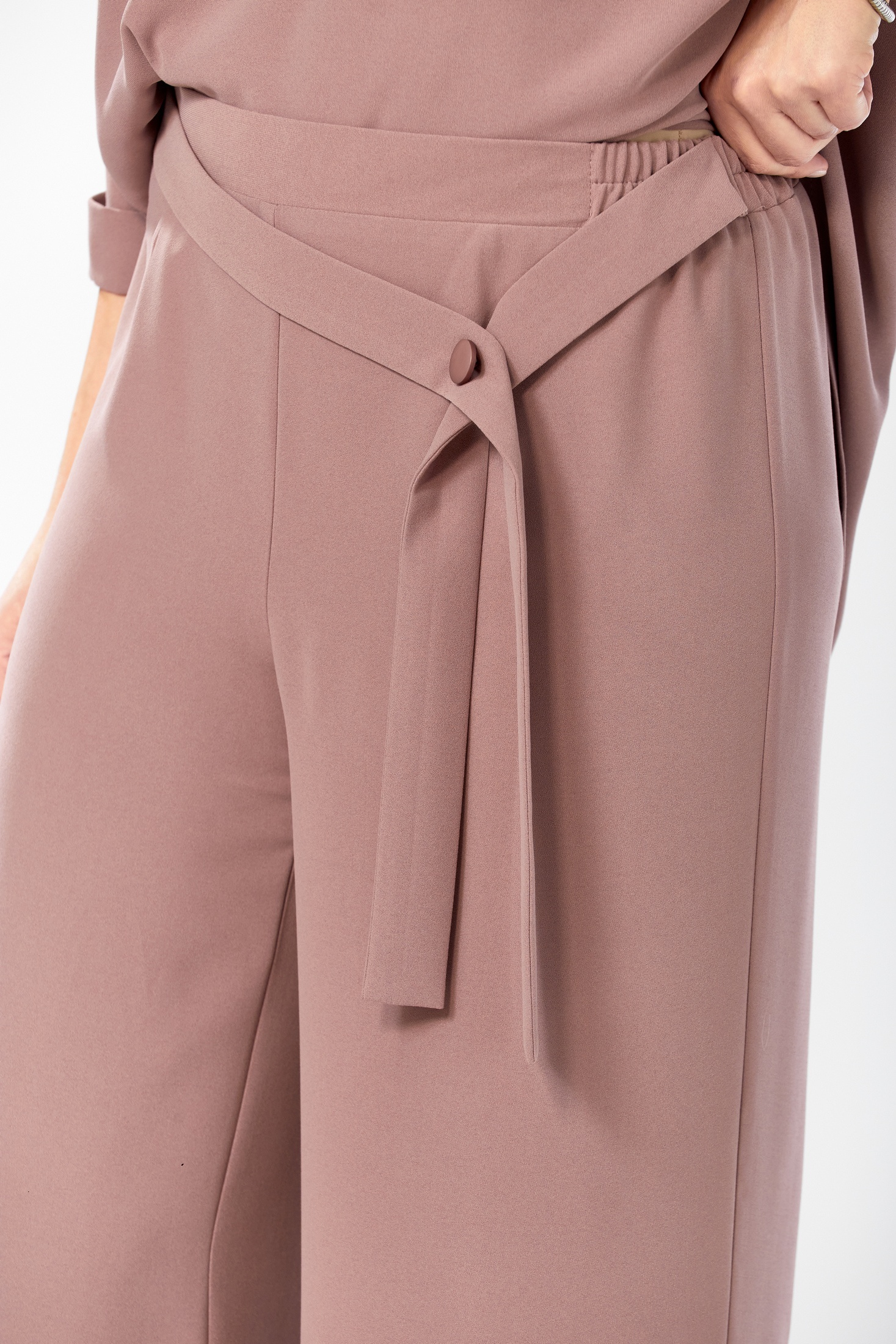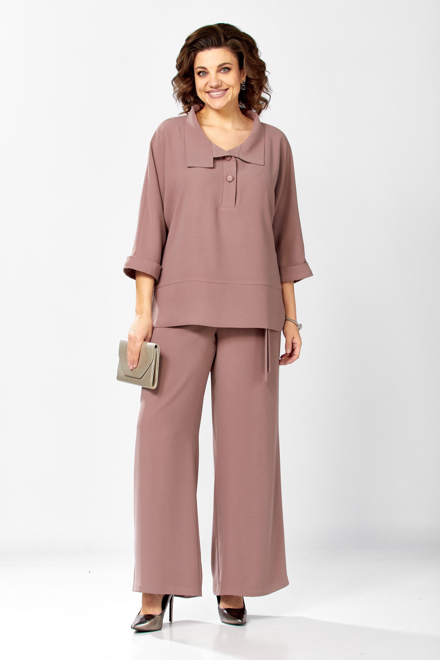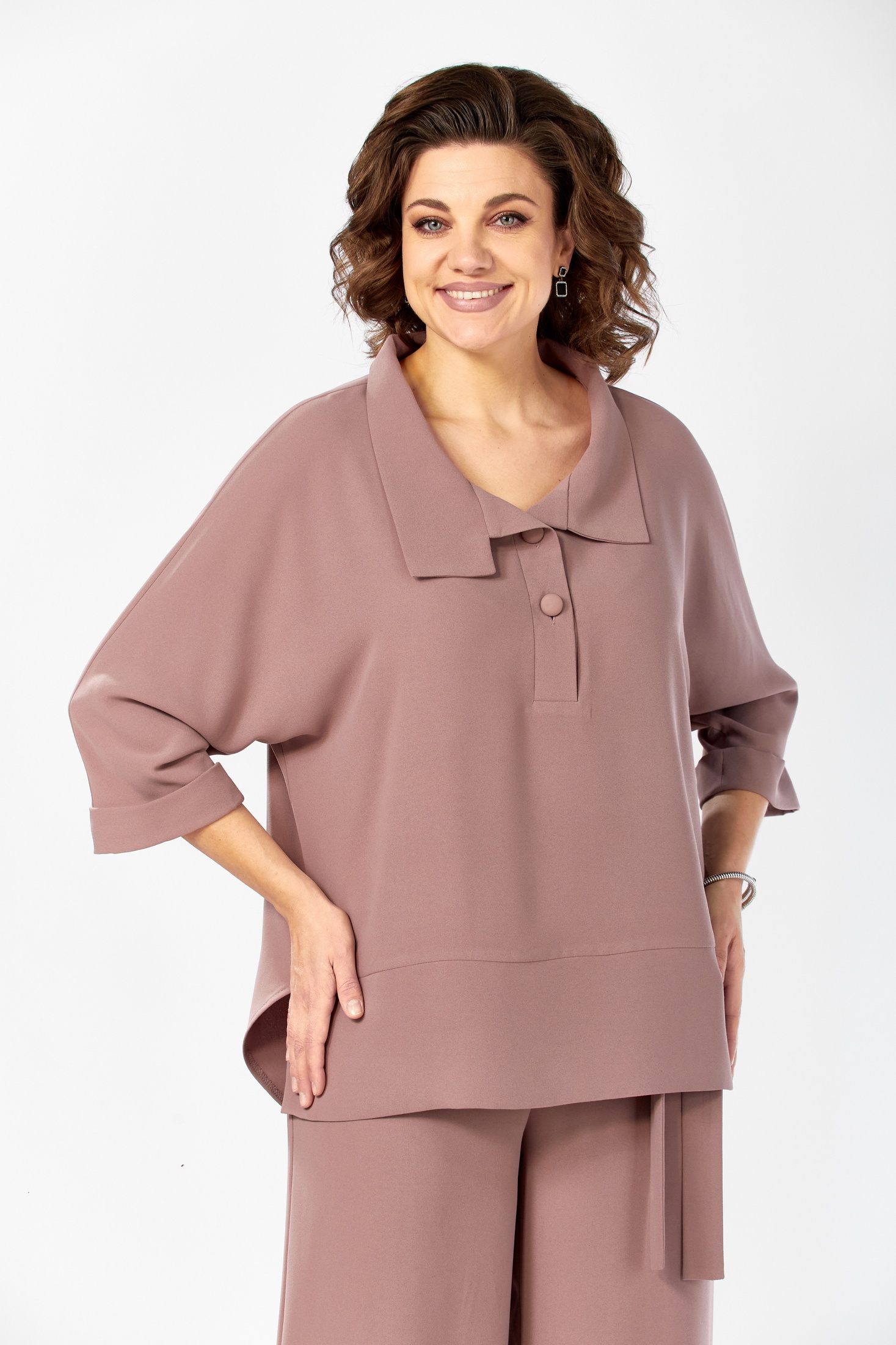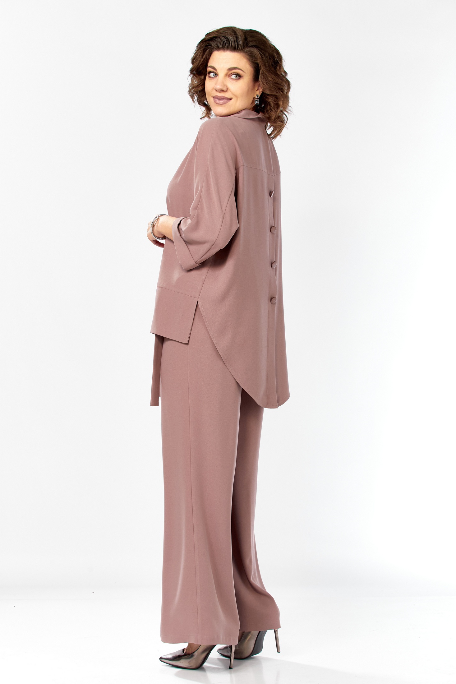 Костюм брючный 1105 какао Багира АнТа — это стильное решение для любого гардероба. Коллекция бренда АнТа предлагает современный взгляд на классику с использованием однотонной плательно-костюмной ткани. Верхняя часть костюма представляет собой свободную блузу оверсайз с цельнокроеным рукавом 3/4, имеющую притачную горизонтальную планку по низу и разрезы в боковых швах. Особый акцент создан благодаря оригинальному воротнику-стойке и декоративным пуговицам на спинке, придающим изделию изящество. Брюки свободного силуэта дополняются притачным поясом с резинкой на спинке, обеспечивая комфорт и удобство. Идеальный для осеннего сезона, этот костюм подойдет для повседневного ношения благодаря приятной вискозной и полиэстеровой ткани, которая дарит ощущение лёгкости и свободы движений. Цвет какао подчеркнет ваш индивидуальный стиль.