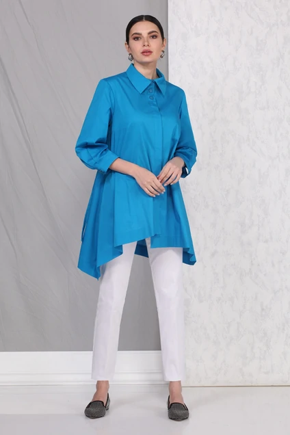 Блузка в стиле "бохо", свободного силуэта, с асимметричным низом.