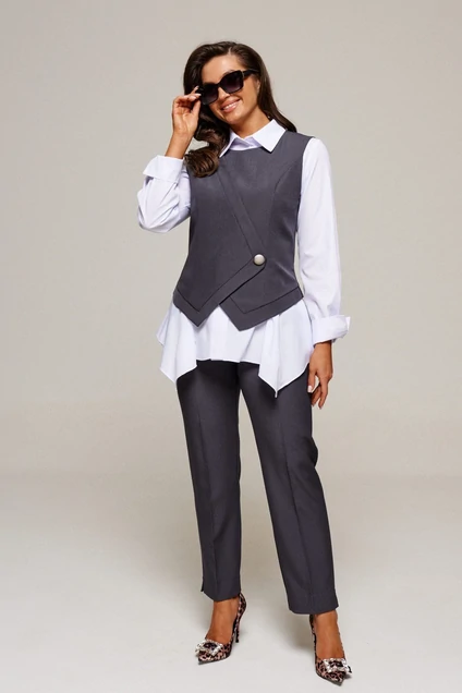 Деловой комплект 3-ка, состоящий из трех элементов: блузки, брюк и жилета.