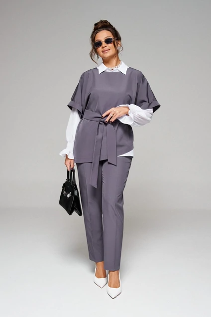 Деловой комплект 3-ка, состоящий из трех элементов: блузки, брюк и жилета.