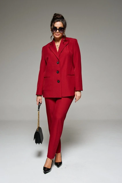 Классический, с деловым акцентом, женский костюм, состоит из 2-х элементов: жакета и брюк.