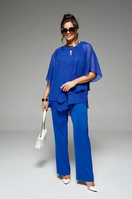 Комплект нарядный, состоящий из блузы и брюк. Данная модель выполнена из двух видов ткани.