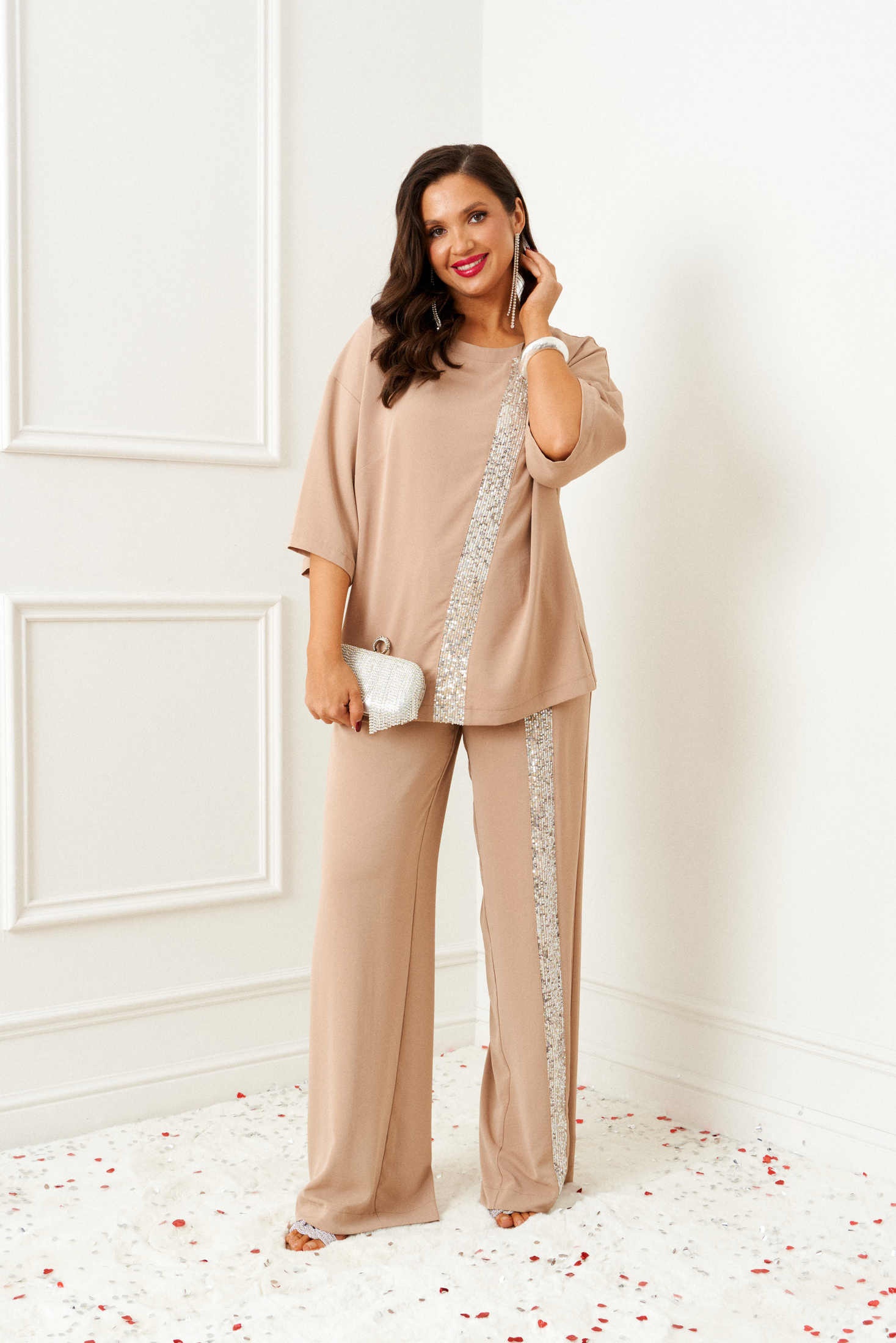 Готовимся к главной ночи года! Брючный костюм из мягкого крепа идеально подходит для торжественных выходов и не только! Оба предмета костюма можно смело комбинировать по отдельности с другими вещами Вашего гардероба. Изысканный костюм состоит из 2-ух предметов: блузки и брюк. Выполнен из костюмно-смесового полотна. У этой ткани нежная, гладко-бархатистая фактура, приятная на ощупь и матовая поверхность. Она легко драпируется и очень выгодно и дорого подчёркивает образ.