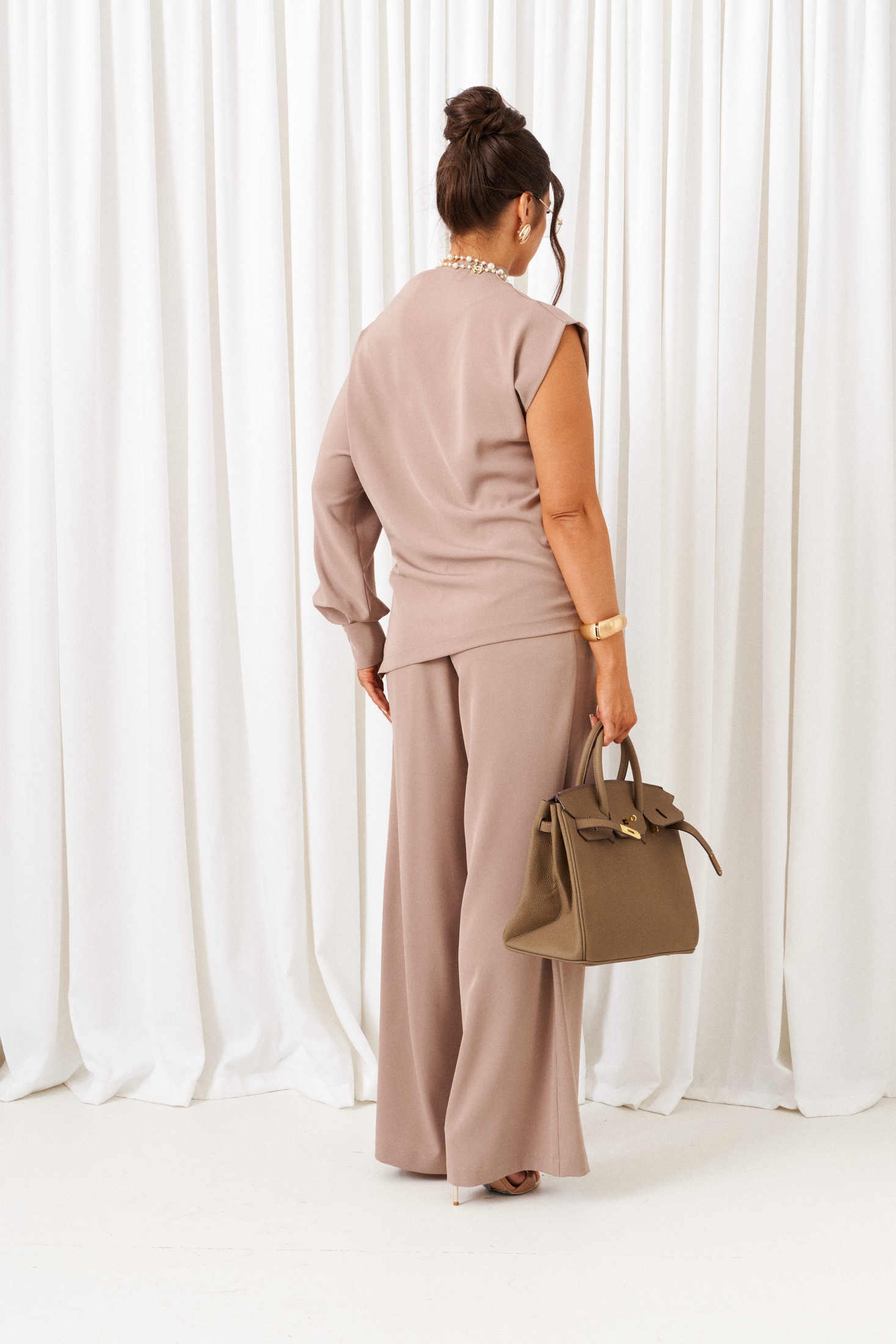 Костюм брючный 6437 капучино Beautiful&Free — стильное сочетание для повседневного комфорта. Коллекция бренда Beautiful&Free предлагает нарядно-повседневный костюм из смесовой ткани с вискозой, который подчеркнет вашу индивидуальность. Костюм включает блузон асимметричного кроя с цельнокроеным длинным рукавом и свободными складками, фиксируемыми манжетой на пуговицах. Высокий разрез по центральному верхнему шву добавляет оригинальности. Брюки широкого фантазийного кроя с функциональными карманами и потайной молнией. Длина блузона по середине спинки ~ 70 см, длина брюк с поясом ~ 108 см. Цвет капучино делает этот костюм универсальным для осенне-весеннего сезона.