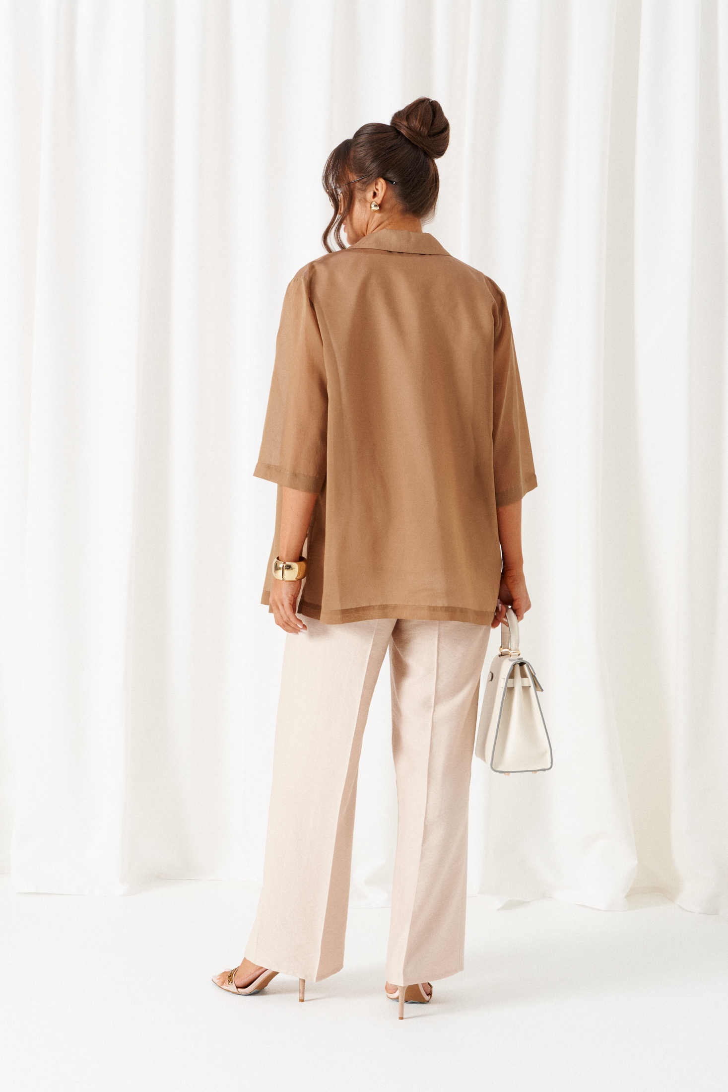 Комплект с блузкой из вуали, льняных брюк и топа – изделие вне времени и трендов, созданное в различных интерпретациях: от оверсайза до классики. Предназначен для повседневного и выходного использования. Найдет применение в жаркую и прохладную летнюю погоду.