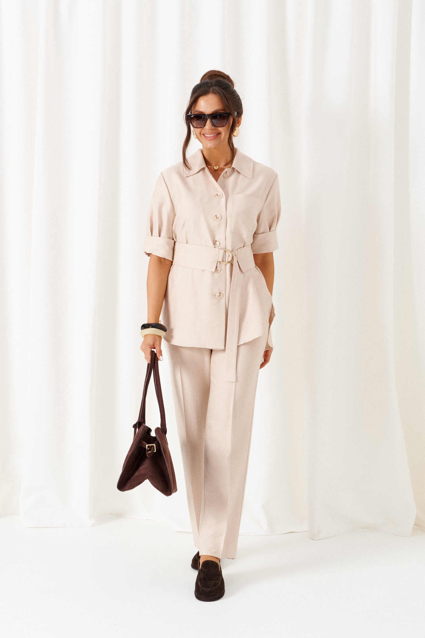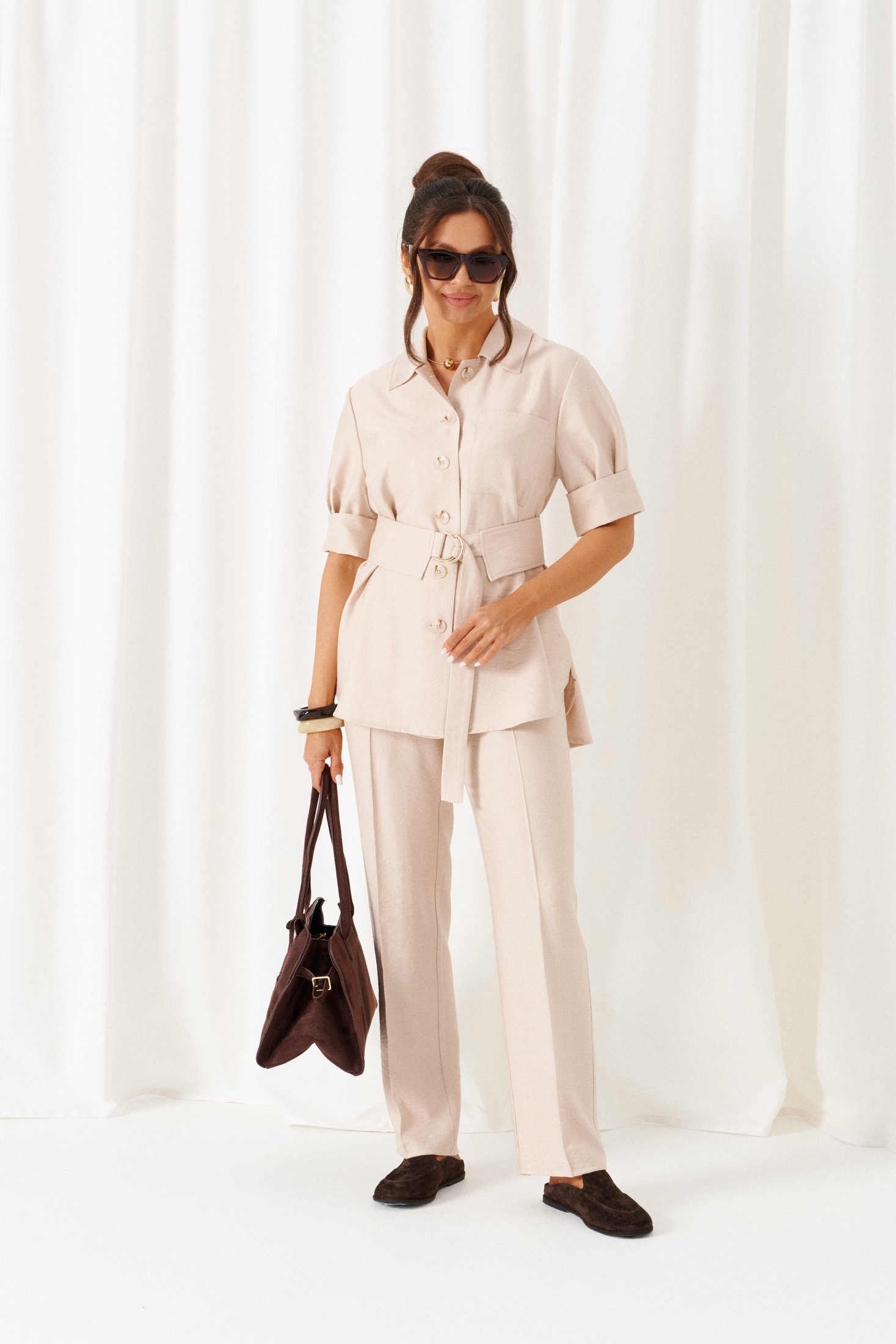 - Брючные костюмы из льна