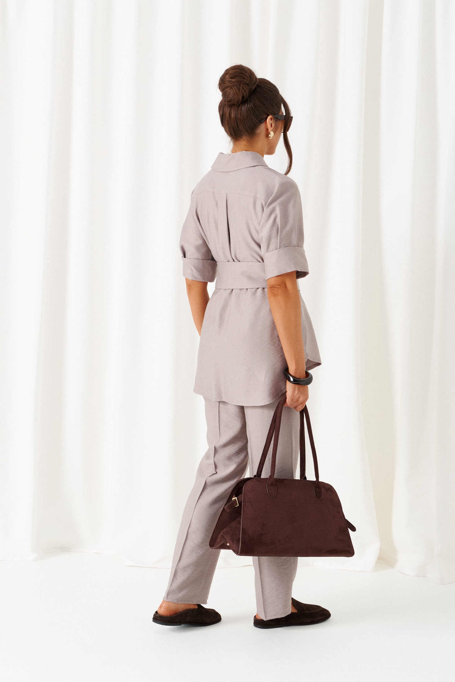 Костюм брючный 6450 какао Beautiful&Free — универсальное решение для повседневного и выходного гардероба. Коллекция бренда Beautiful&Free воплощает стиль и комфорт. Изготовленный из смеси льна и вискозы, костюм отлично подходит для теплого летнего сезона. Блузка свободного кроя с удлиненной спинкой добавляет изюминку, а бантовая складка и стояче-отложной воротник на стойке обеспечивают классический вид. Функциональные карманы и декоративная пряжка делают костюм практичным. Брюки с классической посадкой и эластичным поясом на резинке удобны в носке. Длина блузки составляет 77 см, длина рукава — 30 см, а брюк — 107 см. Цвет какао добавляет изысканности в любой образ.
