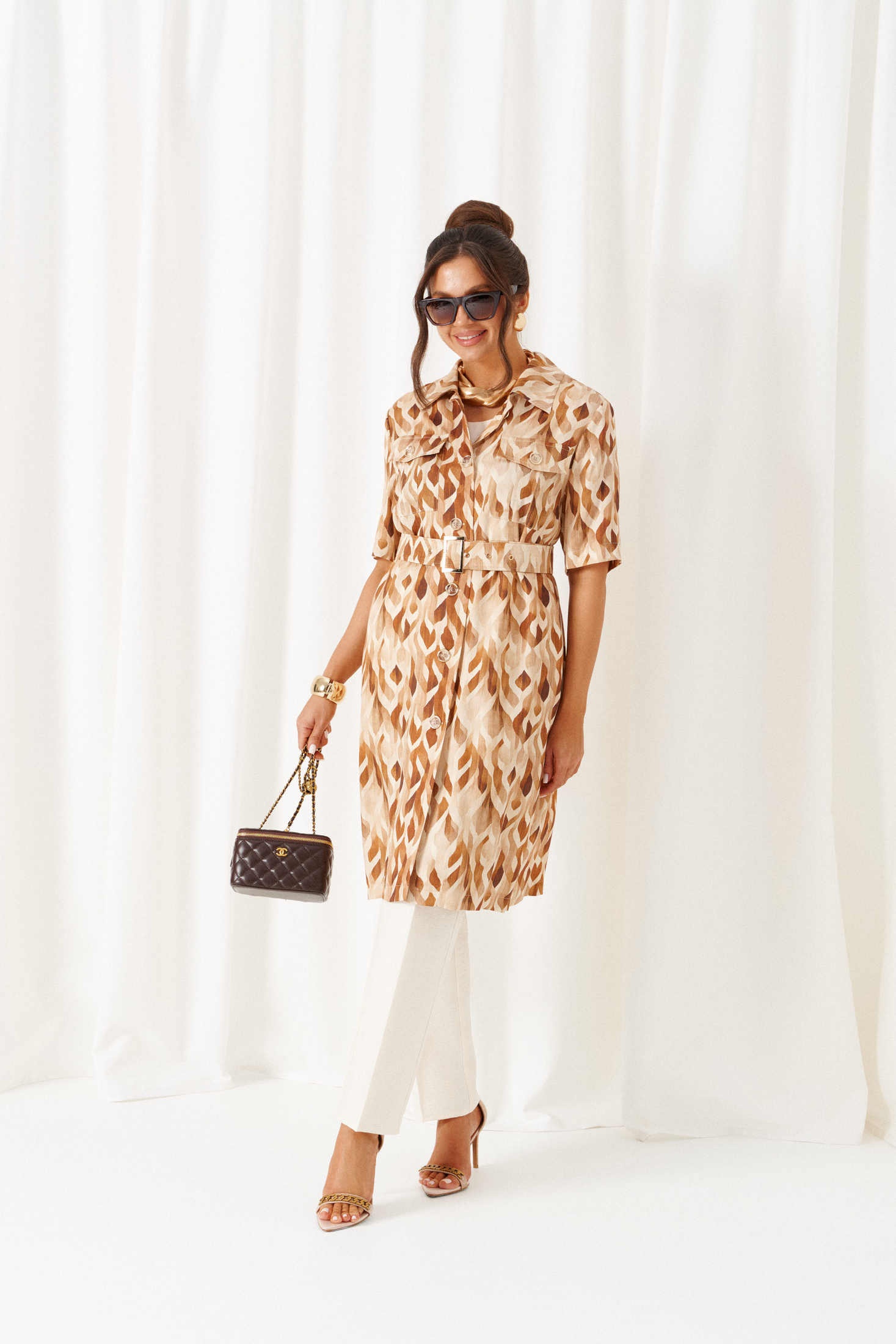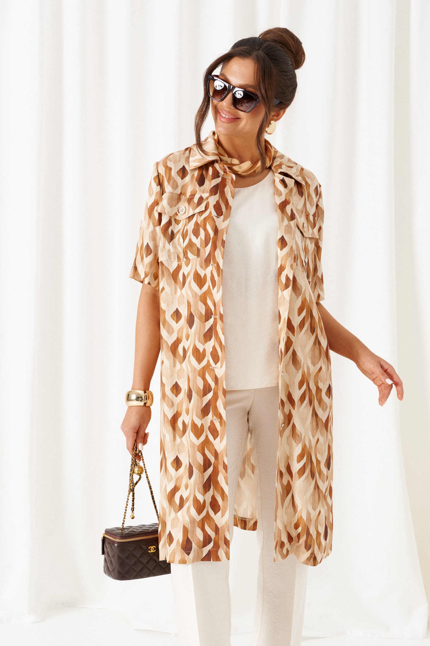 Костюм брючный 6455 песочно-молочный Beautiful&Free – это универсальный комплект, который идеально подойдет как для повседневной носки, так и для более формальных выходов. Коллекция бренда Beautiful&Free сочетает в себе инновации и традиции, предлагая модели из натуральных волокон льна и вискозы. Длинная блузка свободного кроя с кокеткой и нагрудными вытачками добавляет изысканности, а комфортные боковые карманы обеспечивают функциональность. Воротник стояче-отложной формы и застежка на пуговицы создают классический образ. Брюки умеренной ширины со стандартной посадкой подчеркнут фигуру и обеспечат комфорт. Комплект идеально подойдет для жаркой и прохладной летней погоды благодаря качественным материалам. Его цветовая гамма в песочно-молочных оттенках порадует ценителей стильных решений. Длина блузки 100 см, рукава – 30 см, топа – 62 см, брюк – 107 см.