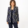 Комплект 2-х предметный состоит из жакета и и брюк. Жакет женский удлиненный, из текстильной ткани, на подкладке, полуприлегающего силуэта с центральной бортовой застежкой на пуговицы до линии перегиба лацкана. Спереди рельефные швы от плечевого шва, отрезной бочок и карман с клапаном. Спинка с рельефами от плечевого шва. Рукав втачной, двухшовный, по низу рукава обработана шлица на петли-пуговицы. Воротник пиджачного типа. Длина по спинке 66 см, длина рукава 62 см. Брюки-палаццо,средней ширины,из плотной текстильной ткани, выполнены с карманами с отрезным бочком в боковом шве. Пояс притачной, застёжка на молнию. По задним половинкам обработаны вытачки. Длина по боковому шву 108 см. брюки хлопок 60%, полиэстер 37%, эластан 3%