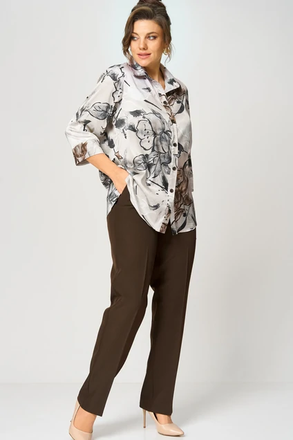 Этот комплект создан для того, чтобы вы забыли о вопросе «Что надеть?». Мы объединили две вещи, которые составляют основу стильного и практичного гардероба. Верх: блуза прямого кроя из нежного текстиля. Рукава 3/4 с манжетами и отложной воротник дарят образу лёгкость и утонченность. Центральная застежка на пуговицы и боковые разрезы добавляют практичности. Длина по спинке 74 см, длина рукава 45. Низ: классические прямые брюки с заутюженными стрелками, которые визуально вытягивают силуэт. Скрытая резинка по бокам гарантирует невероятный комфорт, сохраняя безупречный вид спереди. Длина брюк от талии по боковому шву 103 см.