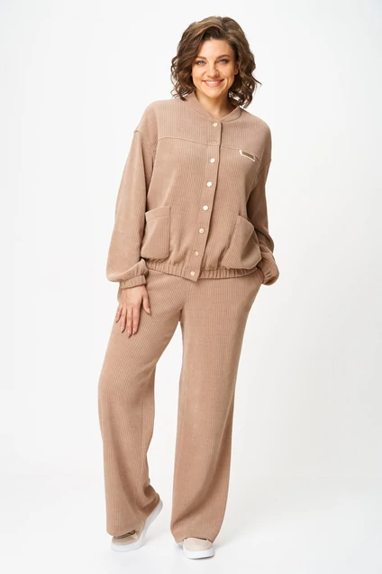 Стильный женский костюм, выполнен из трикотажного полотна в рубчик.
