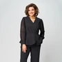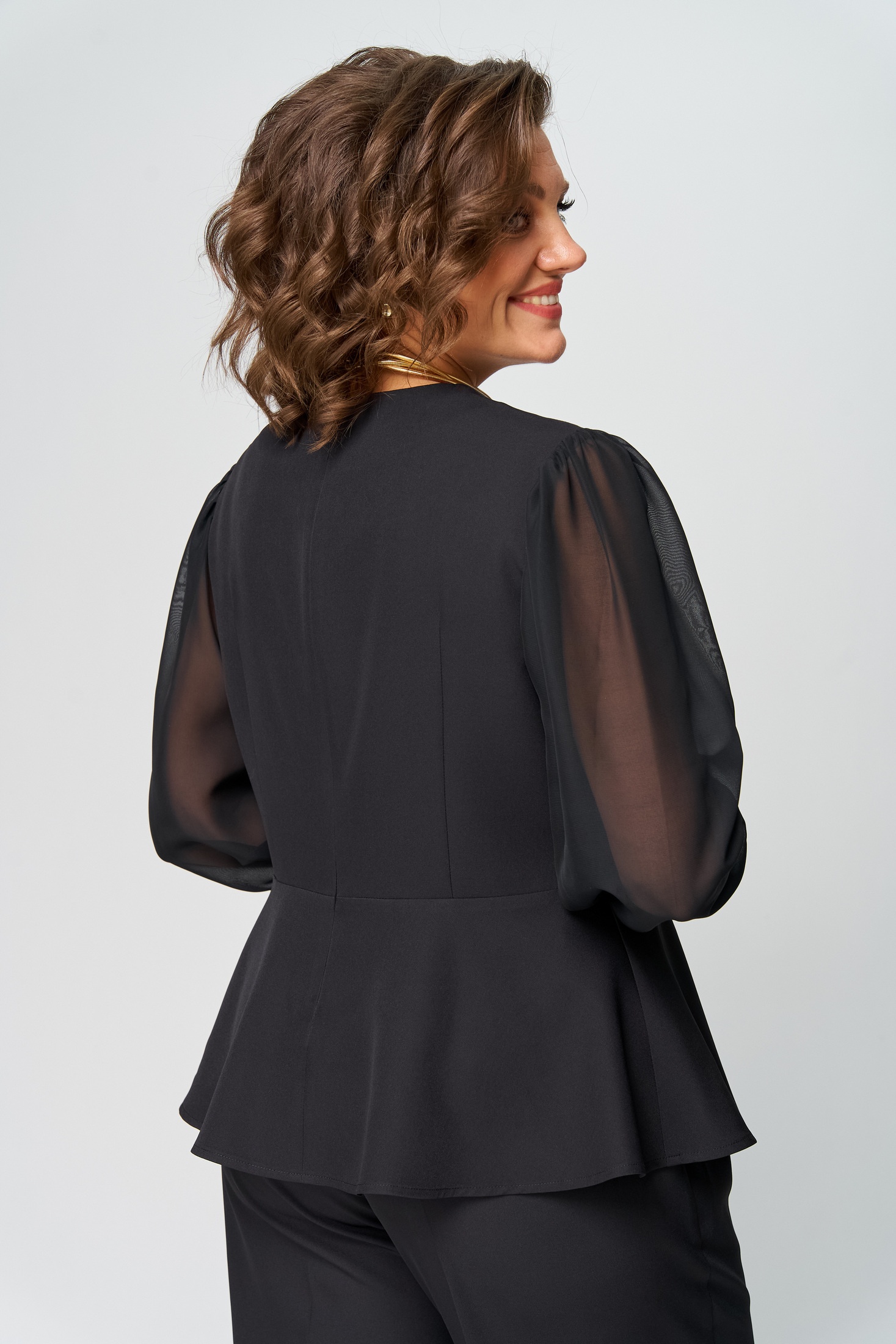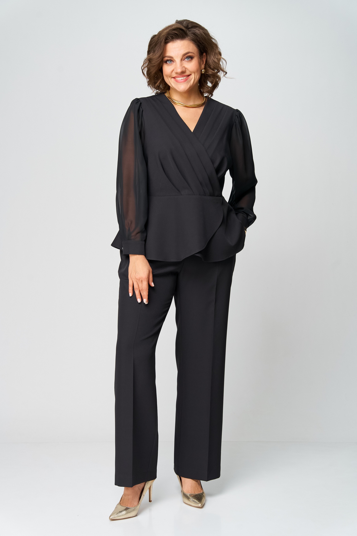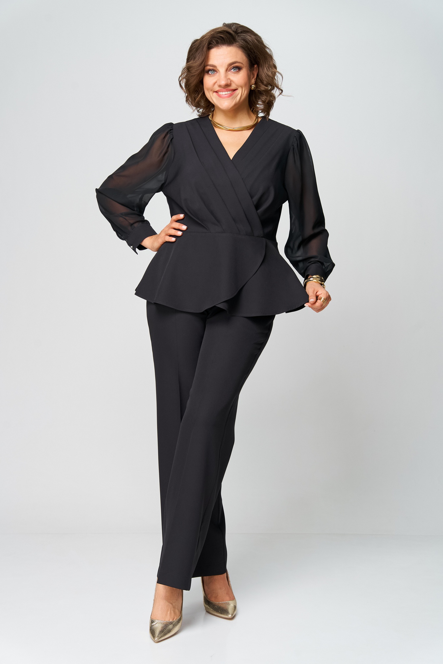 Супер-функциональный нарядный комплект, который состоит из нарядной блузки и брюк. Блузка – универсальная вещь в гардеробе женщины. В модели скомбинированы две фактуры ткани. Наша блуза с объемными шифоновыми рукавами на манжетах. Модель приталенного силуэта. Запах образует на блузке V-образный вырез, который хорошо подчеркивает шею, несколько удлиняет ее, делая линию плеча более узкой, а фигуру в целом – стройнее. Кроме того, за счет запаха талия визуально сужается и силуэт становится более приближенным к идеальной фигуре – песочные часы. Такой верх можно успешно сочетать с брюками, юбками, шортами, формируя образ деловой романтичной, активной и утончённой дамы.