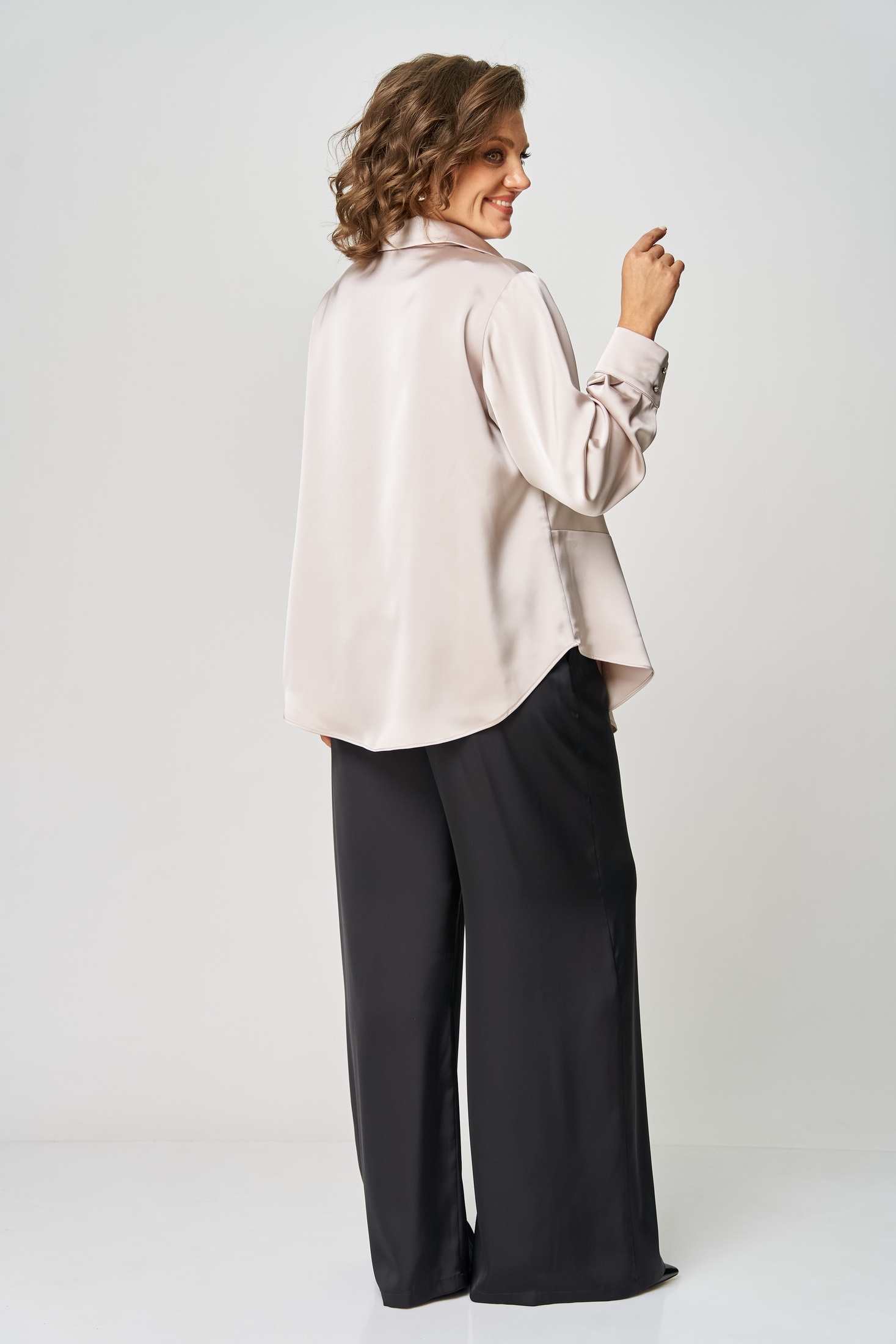 Брюки умеренные по бедру, расширенные к низу. Высокая посадка по талии визуально вытягивают фигуру. Для удобства пояс присобран на эластичную тесьму. По переду обработаны карманы - «хулиганы» с отрезным бочком. Брюки просты в уходе и удобны в носке. Таким образом, атласный наряд– это настоящее спасение любой красавицы, а поэтом обязательно должен быть в каждом женском гардеробе.