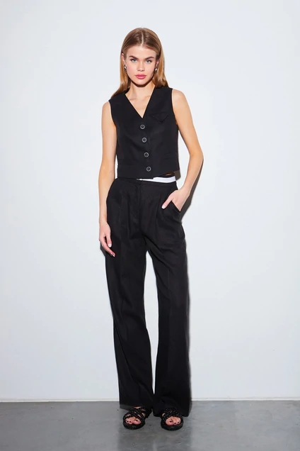Комплект, из льняной ткани, состоящий из жилета и брюк.