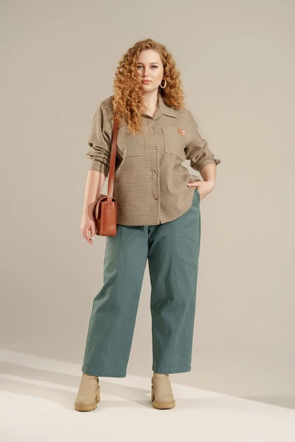 Комплект женский двухпредметный. Куртка-жакет свободного покроя на подкладке. Воротник отложной, застежка на петли и пуговицы. По переду накладные карманы и карманы в подрезах. На спинке кокетка. Рукав втачной слегка спущенный, по низу разрез и манжет с застежкой на пуговицу. Длина по спинке - см, длина рукава от горловины- см. Брюки из плотного хлопкового джинса свободного покроя зауженные к низу. По передним половинкам декоративные швы, в боковых швах карманы с отрезным бочком, На задних половинках брюк накладные карманы. Застежка на молнию и петлю с пуговицей. Пояс отрезной с вставкой эластичной тесьмы. Карманы в брюках декорированы хольнитенами. Длина с учетом пояса - см. Брюки: Хлопок-98%, ПЭ-2%