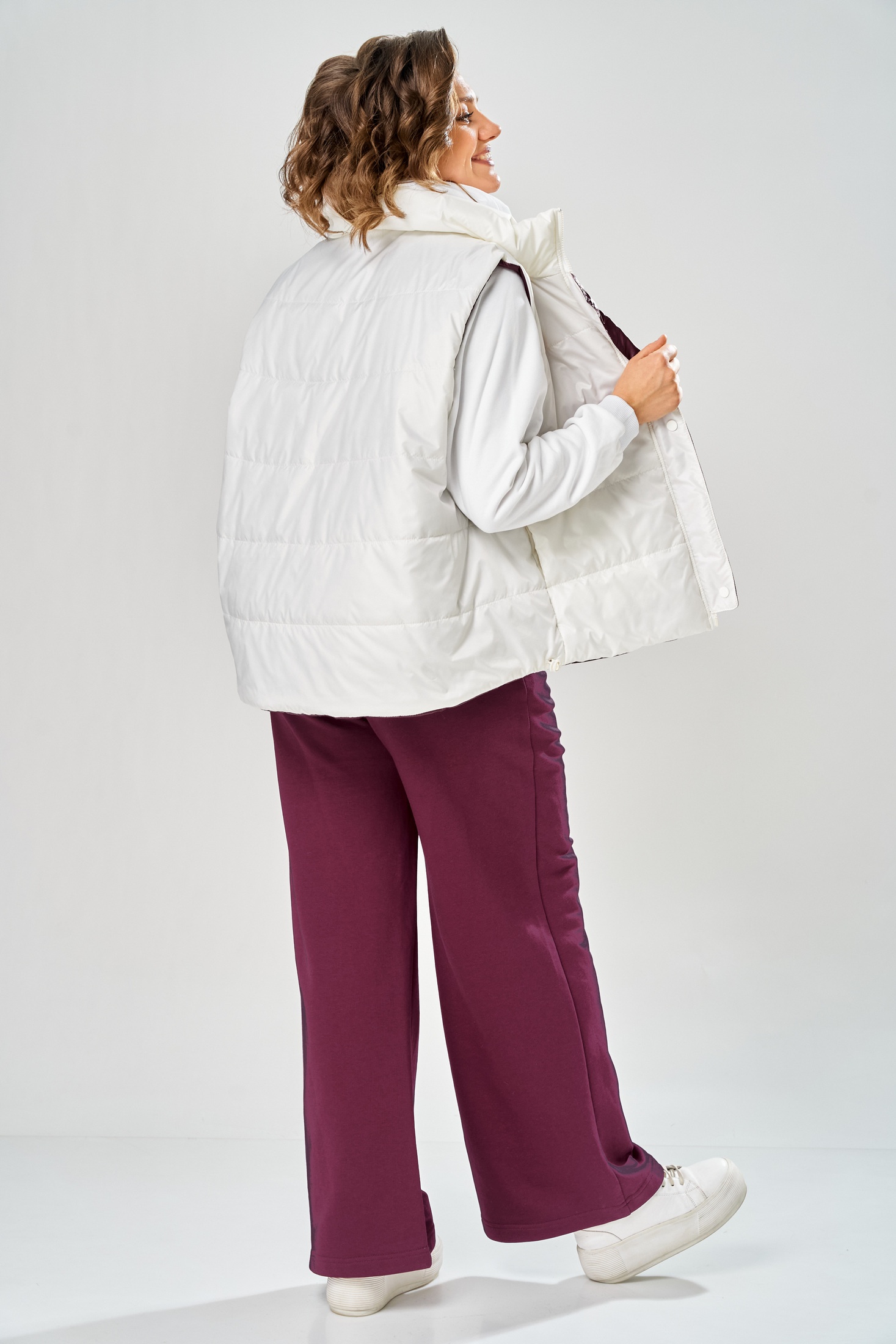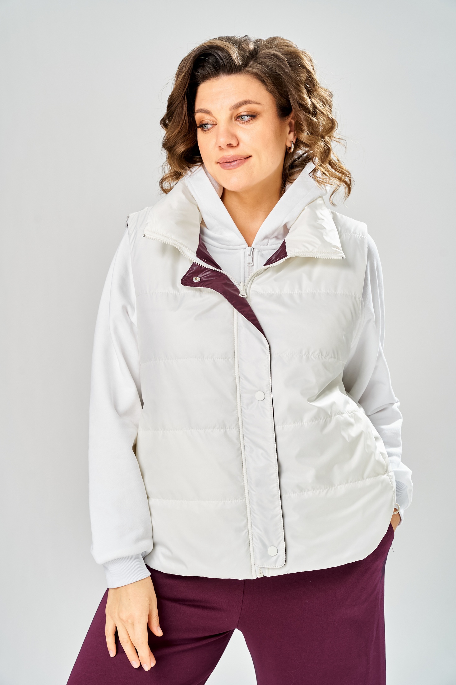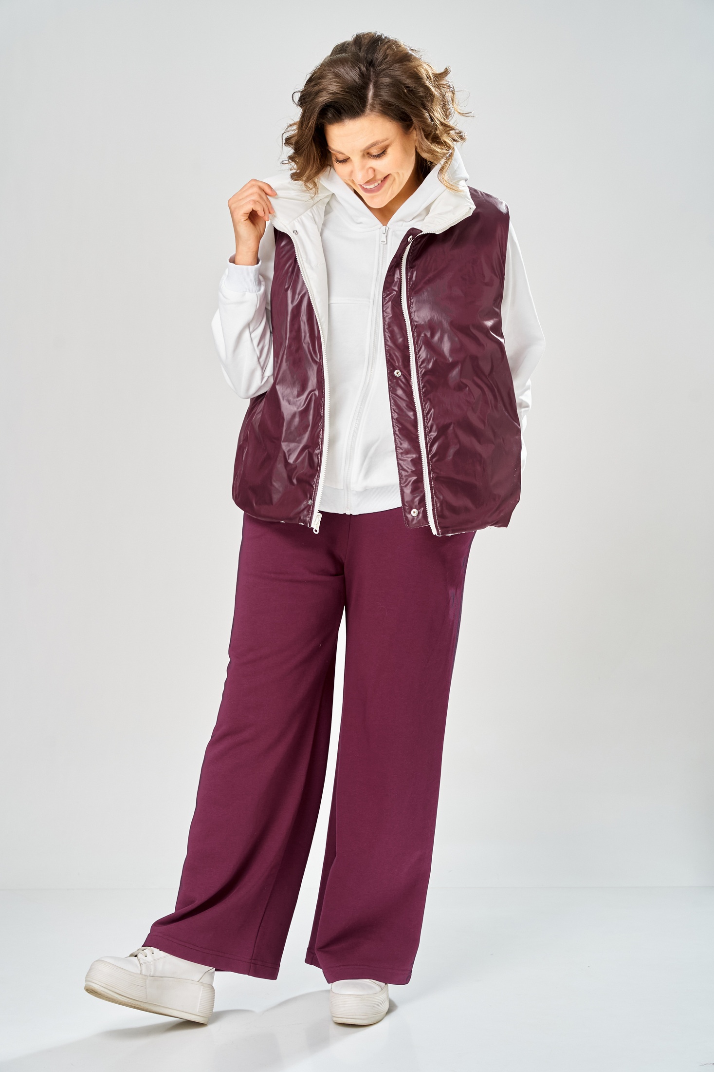 Костюм брючный 2165 бордо Diamant представляет собой стильное и практичное решение для межсезонья. Коллекция бренда Diamant соединяет комфорт и элегантность. Надежный материал, сочетающий хлопок и полиэстер, гарантирует удобство носки и долговечность. Модель выделяется свободным покроем кофты с регланом и капюшоном на центральной застежке-молнии, дополненной манжетом и отделочным поясом. Особое внимание привлекает двухсторонняя жилетка с карманами и кнопками, длина которой по спинке составляет 68 см. Брюки с поясом на резинке и карманами по бокам обеспечивают свободу движений. Глубокий бордовый цвет костюма придаст изюминку вашему гардеробу, а температурный режим до +5°C делает его идеальным выбором для прохладной весны или осени.