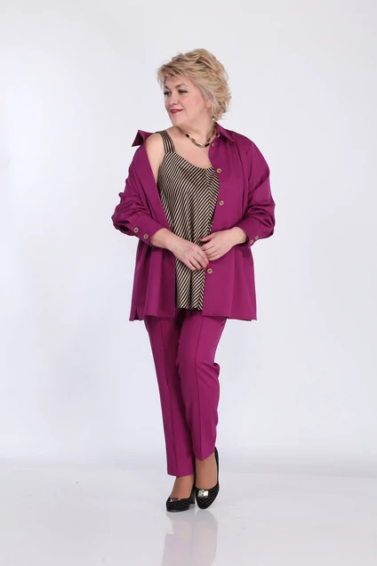 Костюм женский трехпредметный состоит из рубашки, топа и брюк.