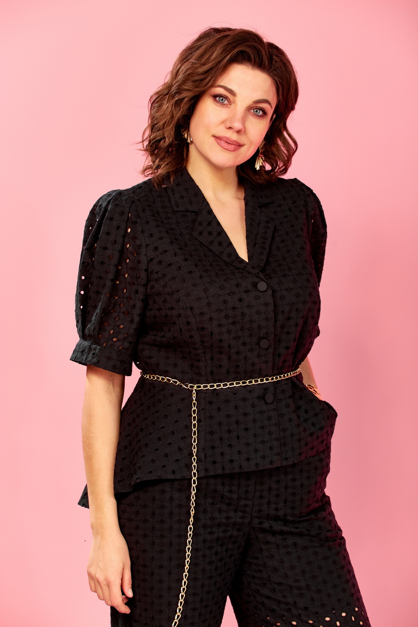 Костюм брючный 181 AVA fashion от коллекции бренда AVA fashion представлен в классическом стиле, выполненный из 100% хлопка. Жакет с баской и V-образным вырезом создает утонченный образ, дополненный акцентными складками на втачных рукавах. Застежка на пуговицы и ремень-цепочка подчеркивают современный дизайн. В комплект входят прямые брюки с боковыми карманами и удобным эластичным поясом. Длина жакета по спинке составляет 67 см, а длина брюк — 110 см. Идеально подходит для офиса или вечернего выхода, подчеркивая ваш стиль и индивидуальность.