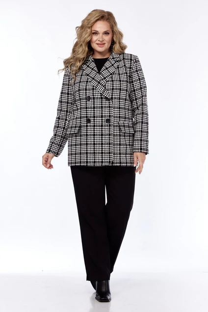 Стильный образ и уютное решение для прохладной осени. Комплект 2-х предметный состоит из жакета и брюк. Жакет прямого силуэта, с отложным воротником, с двубортной застёжкой на пуговицы. На передней полочке предусмотрены функциональные карманы с клапаном. Классический втачной двухшовный рукав состоит их двух деталей, низ обработан пришивной шлицей на 3 пуговицы. Изделие полностью на подкладке. Брюки прямые, слегка зауженные к низу. Пояс притачной, частично на резинке.