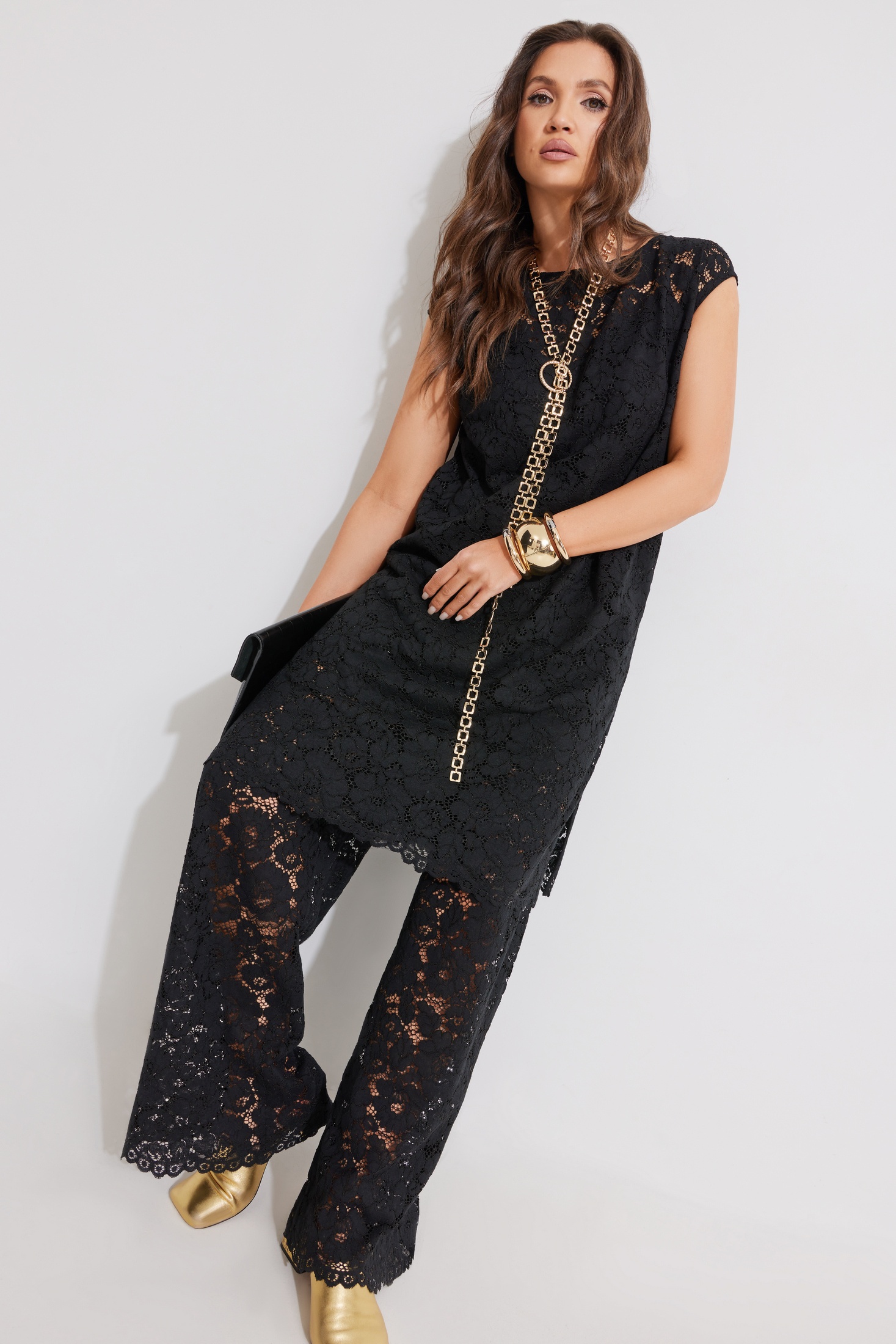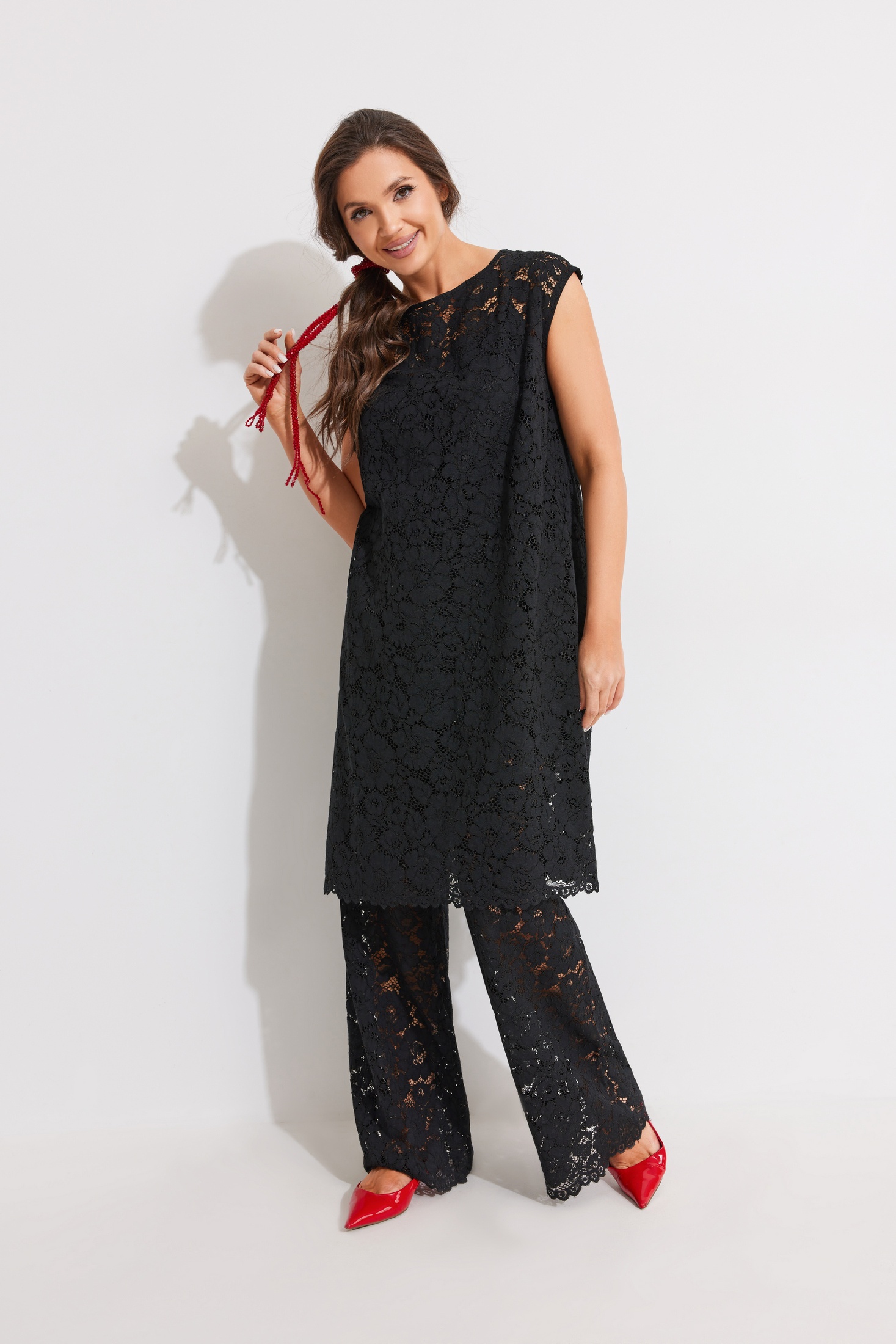 Костюм брючный 1354 ElPaiz предлагает стильное решение для вашего гардероба. Коллекция бренда ElPaiz сочетает комфорт и современный дизайн. Костюм состоит из туники, топа и брюк, выполненных из комбинации полиэстера и вискозы, с добавлением эластана и хлопка для мягкости и эластичности. Туника прямого силуэта с вырезом 'лодочка' и разрезами в боковых швах создает легкость и воздушность. Регулируемые бретели на топе обеспечивают идеальную посадку. Брюки прямого силуэта с укороченной подкладкой идеально подходят для теплой погоды или как часть многослойного образа. Чёрный цвет добавляет универсальности, делая костюм подходящим для различных поводов. Этот костюм станет отличным выбором как для повседневных прогулок, так и для офисного стиля.