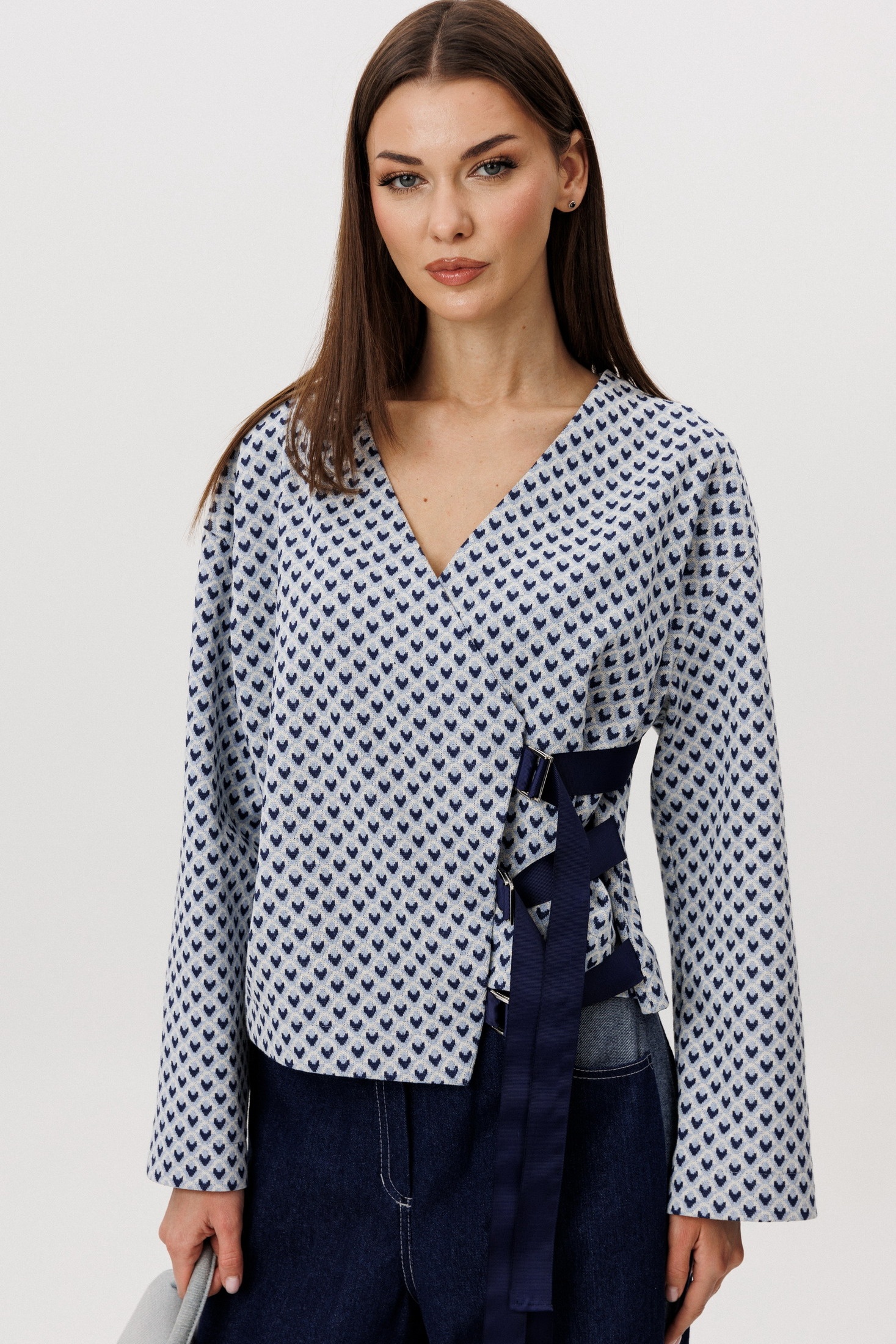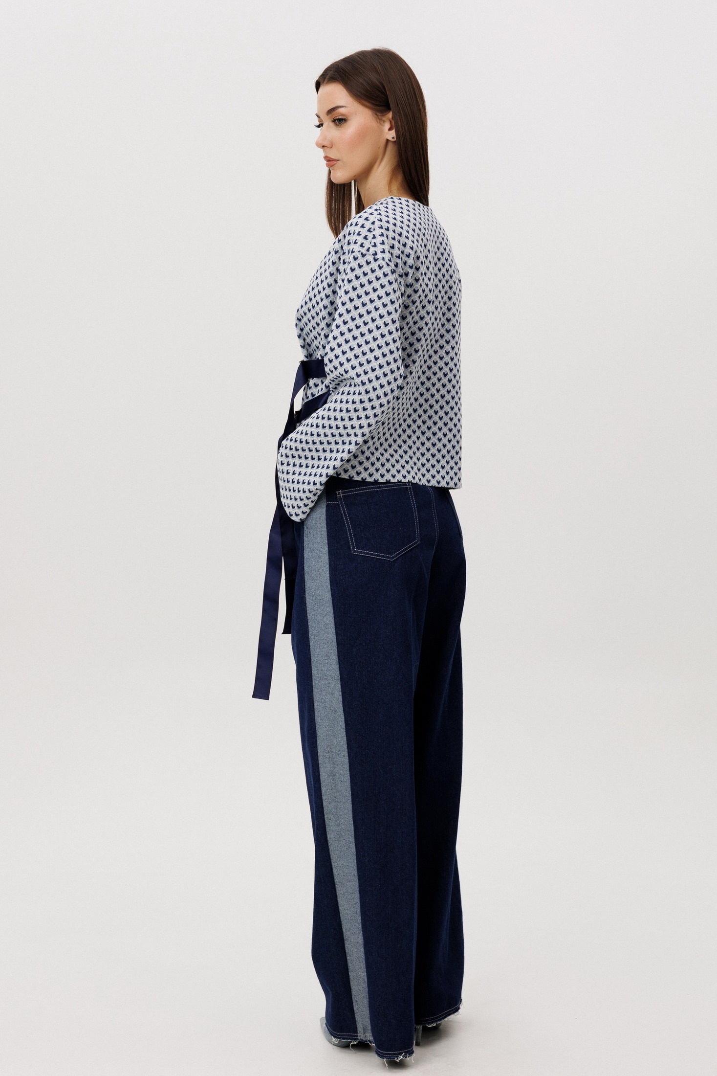 Костюм брючный 5341 FantaziaMod — это гармоничное сочетание комфорта трикотажного джемпера и выразительности денима брюк. Коллекция бренда FantaziaMod предлагает идеальное решение для повседневного гардероба в стиле smart casual. Мягкий трикотаж и свободный крой джемпера с V-образным вырезом обеспечивают комфорт и свободу движений, а геометричный принт добавляет динамики. Брюки из плотного денима с высокой посадкой и широким кроем подчеркнут современный характер вашего образа, создавая эффект удлиненных ног. Костюм выполнен в стильном контрасте оттенков и подходит для демисезонного ношения. Комфорт и адаптивность комплекта позволяют легко комбинировать его с разной обувью и аксессуарами, трансформируя образы под любые стилистические задачи.