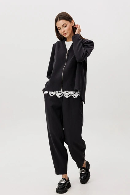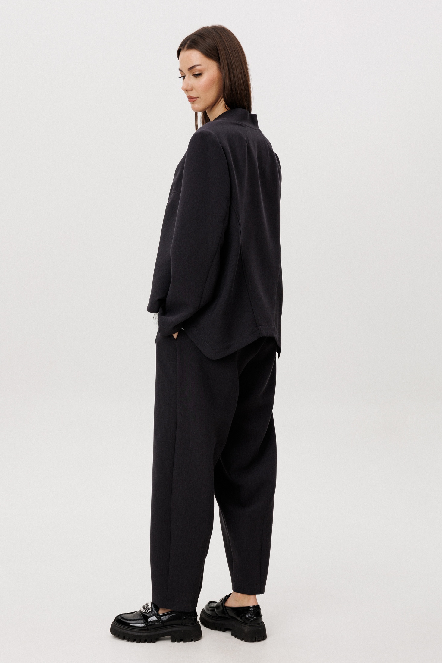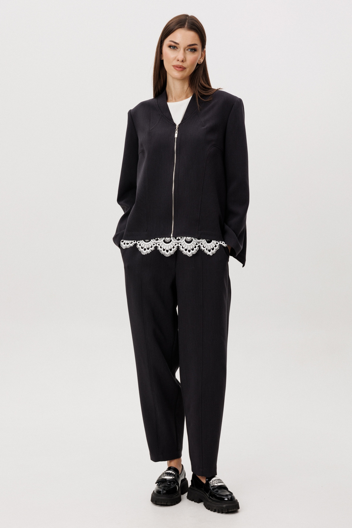 Костюм брючный 5366 темный графит FantaziaMod сочетает современный минимализм с продуманными деталями. Коллекция бренда FantaziaMod представлена костюмом-тройкой, в котором жакет прямого силуэта с архитектурной спинкой и молнией создаёт выразительный стиль и графичное звучание. Брюки-бананы с мягкой линией кроя формируют актуальный силуэт с акцентом на талии. Хлопчатобумажный топ с кружевом добавляет женственность и завершённость образу. Материалы - полиэстер, вискоза и немного эластана - обеспечивают комфорт и лёгкость в носке. Идеально подходит для повседневного и офисного стиля, подчёркивая форму и текстуру. Цвет — темный графит, хорошо сочетается с различными аксессуарами. Подходящий вариант для осени и весны.