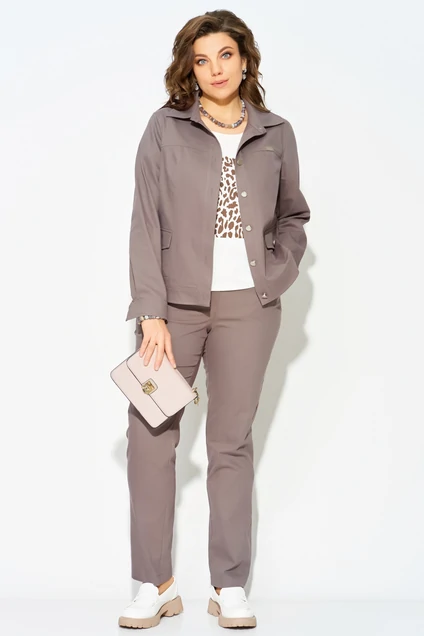 Костюм брючный 40111 шоколадный FITA — это стильный и молодежный выбор для уверенных в себе женщин. Коллекция бренда FITA предлагает комплект тройка "Деяна", включающий бомбер, джинсы и джемпер. Бомбер выполнен из хлопковой джинсовой ткани, обладает полуприлегающим силуэтом и оснащен однобортной застежкой на пуговицы. Накладные карманы и отложной воротник добавляют функциональности и винтажного шарма. Джинсы зауженные к низу с резинкой по спинке и средняя посадка обеспечивают комфорт и стиль на каждый день. Джемпер с принтом "Леопард" добавляет энергии и выразительности. Комплект идеально подходит для повседневной носки в межсезонье и станет незаменимым элементом вашего гардероба.