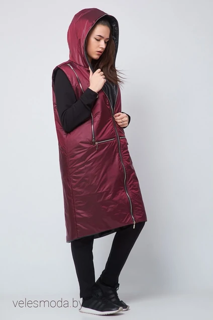 Жилет свободного силуэта, удлиненный с застежкой на молнии,капюшоном.