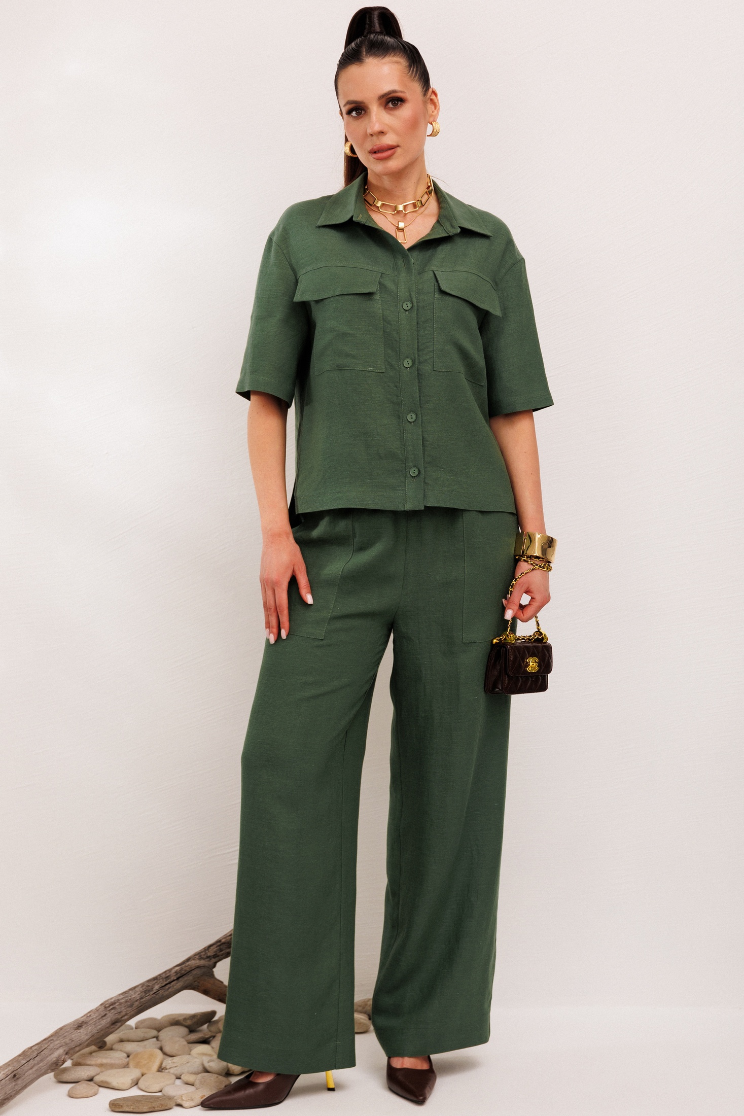 Костюм брючный 982-1 хаки Галеан Стиль привнесет ощущение лёгкости и свободы в ваш гардероб. Коллекция бренда Галеан Стиль подчёркивает изящество и комфорт каждого изделия. Этот льняной костюм из двух предметов идеально подойдёт для жарких дней благодаря натуральным свойствам ткани. Комплект включает в себя рубашку и брюки прямого силуэта в изысканном хаки-цвете. Рубашка снабжена воротником-стойкой и накладными карманами, что делает её удобной и практичной. Брюки с резинкой по всей ширине и декоративным шнурком обеспечивают идеальную посадку и комфорт в движении. Большие подгибы позволяют подогнать длину брюк под ваш рост. Этот костюм станет прекрасным решением для повседневного или прогулочного стиля в летний сезон.