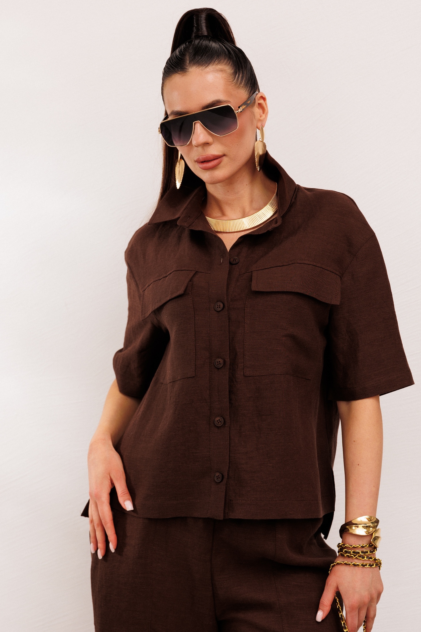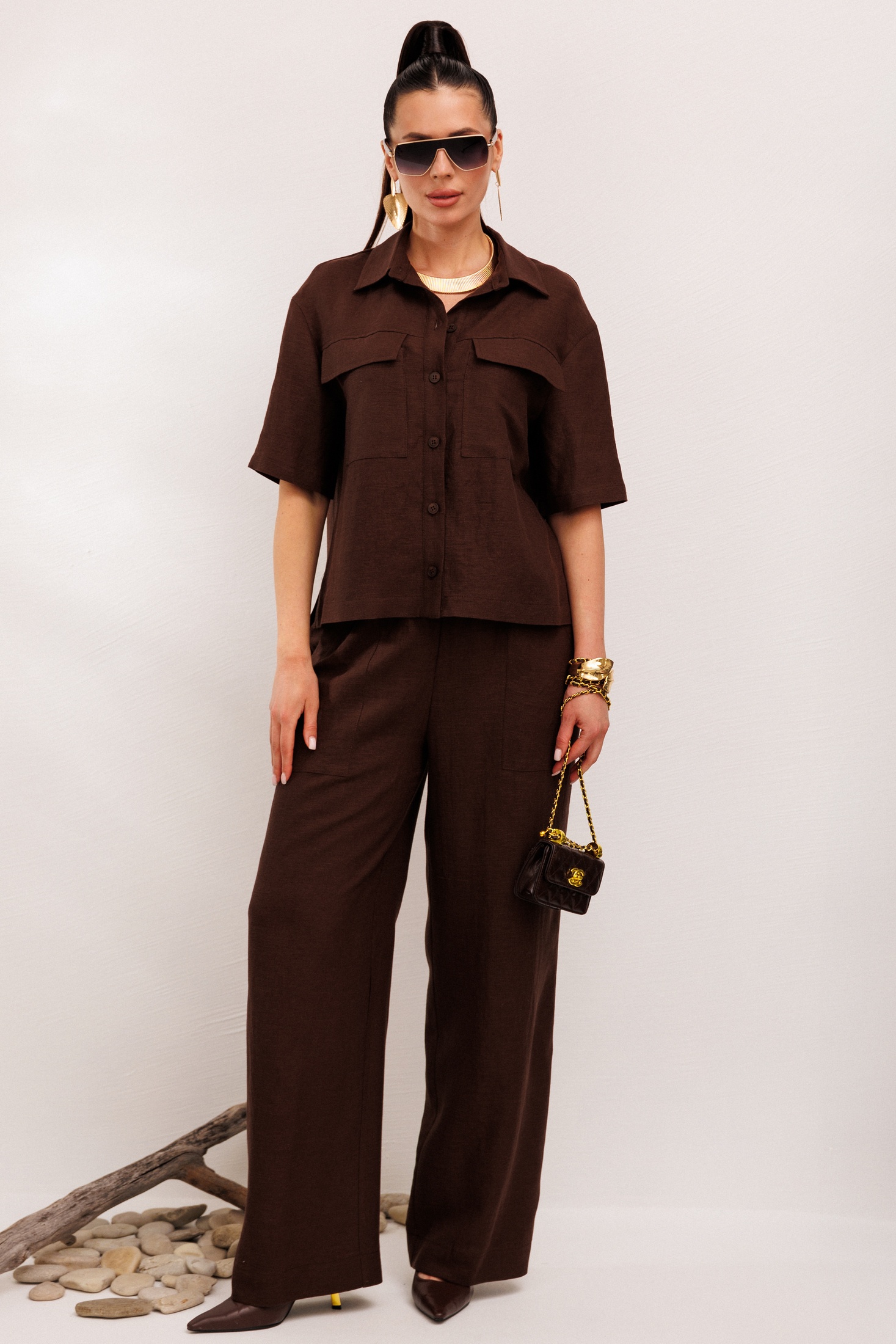 Костюм брючный 982-1 коричневый Галеан Стиль — это идеальное решение для женщин, ценящих комфорт и актуальный стиль. Коллекция бренда Галеан Стиль предлагает льняной костюм двойку, который включает в себя рубашку с прямым силуэтом и воротником-стойкой, а также брюки с резинкой и декоративным шнурком. Этот комплект отлично подходит для жарких летних дней благодаря натуральному льну, который обеспечивает свободу движений и комфорт. Основные детали включают накладные карманы на рубашке и брюках. Костюм коричневого цвета, который легко сочетать с различными аксессуарами. Он идеально подходит для повседневного использования, обеспечивая стильный и непринужденный вид.