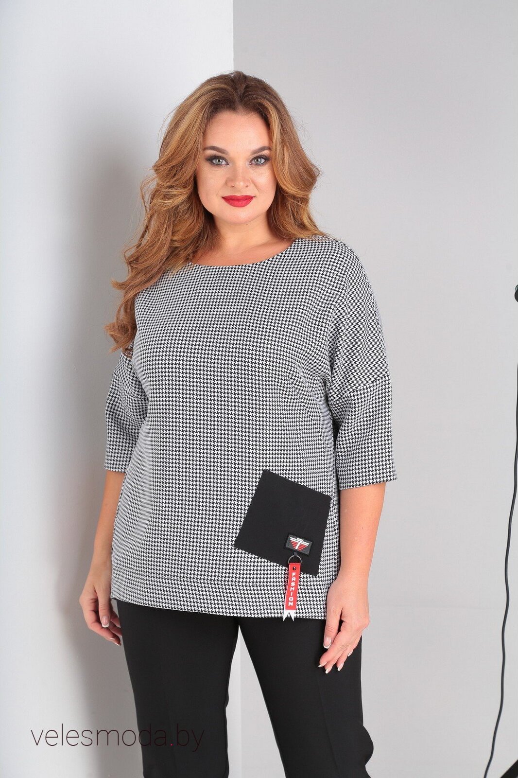 Комплект женский , состоящий из джемпера и брюк. Брюки женские полуприлегающего силуэта зауженные к низу. По низу боковых швов обработаны разрезы, на задних половинках брюк талиевые вытачки. Верхний край обработан поясом. В 58-62 размерах в поясе вставлена резинка в области боковых швов. Застежка на тесьму-молнию и пуговицу с петлей на поясе. Джемпер свободного кроя, без плечевых накладок со спущенным плечем и 3\4 рукавом. Боковые швы переходящие в сторону переда. Нагрудные вытачки от боковых швов. С левой стороны накладной карман черного цвета на котором настрочен декоративный элемент. На спинке мягкая складка. Обтачка горловины красного цвета. Рукава одношовные, низ джемпера обработан обтачкой. Длина джемпера от горловины спинки до низа: р-р 52-56 -74 см, р-р 58-62 -77 см , длина брюк по боковому с учетом пояса: р-р52-56 -100 см, р-р 58-62 -102 см