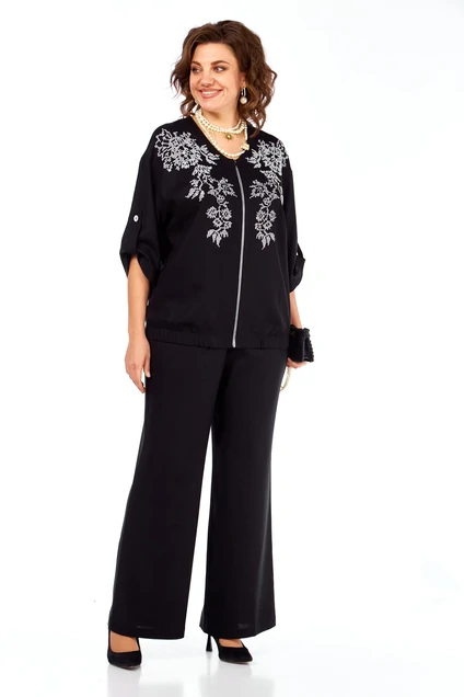 Костюм брючный 281 черный Grace for you — отличный выбор для стильных и комфортных летних дней. Коллекция бренда Grace for you предлагает женский комплект из льна, который позволяет коже дышать и сохраняет свежесть в течение дня. Жакет прямого силуэта с застежкой "молния" и дизайнерской вышивкой добавляет особый шарм. Спущенное плечо и патами на рукавах создают легкость и непринужденность образа. Брюки с боковыми карманами и резинкой на поясе обеспечивают комфорт и удобство. Черный цвет костюма универсален и подходит как для работы, так и для прогулок или вечерних мероприятий. Летний легкий стиль делает этот костюм идеальным для теплого времени года.