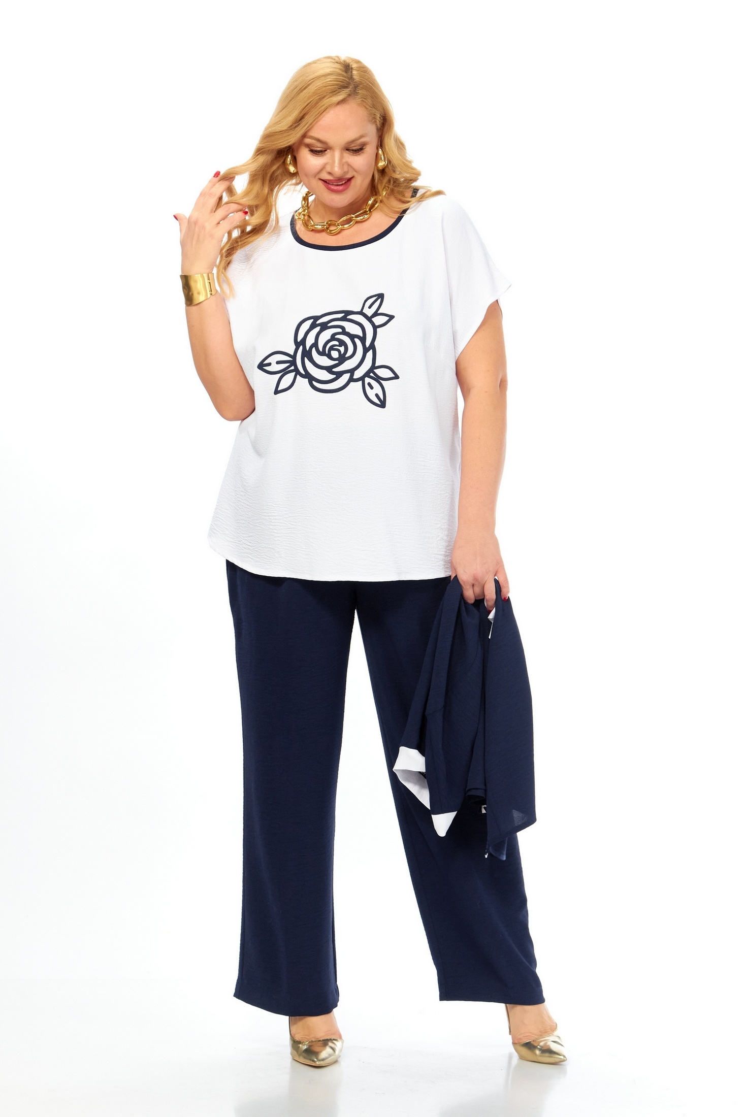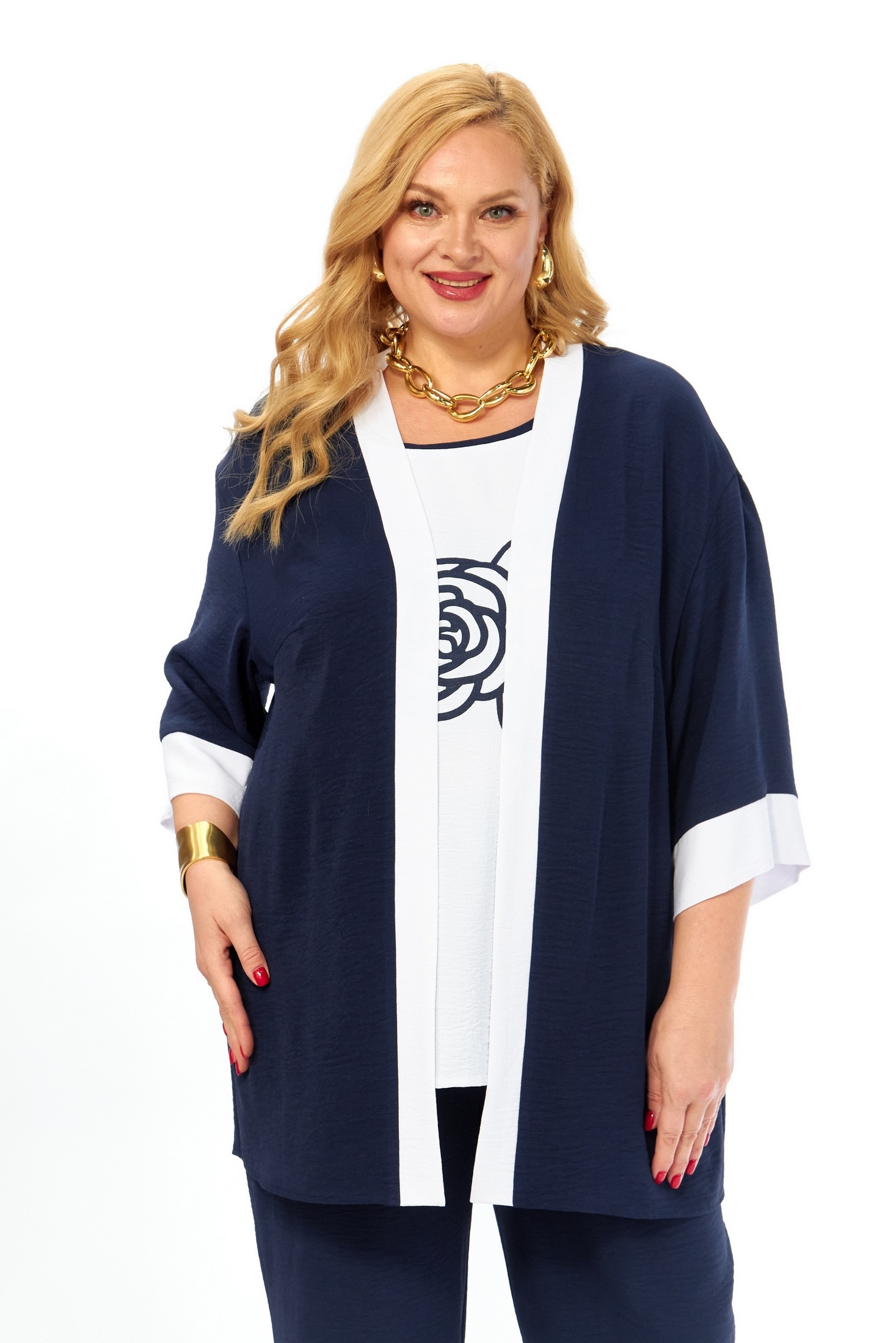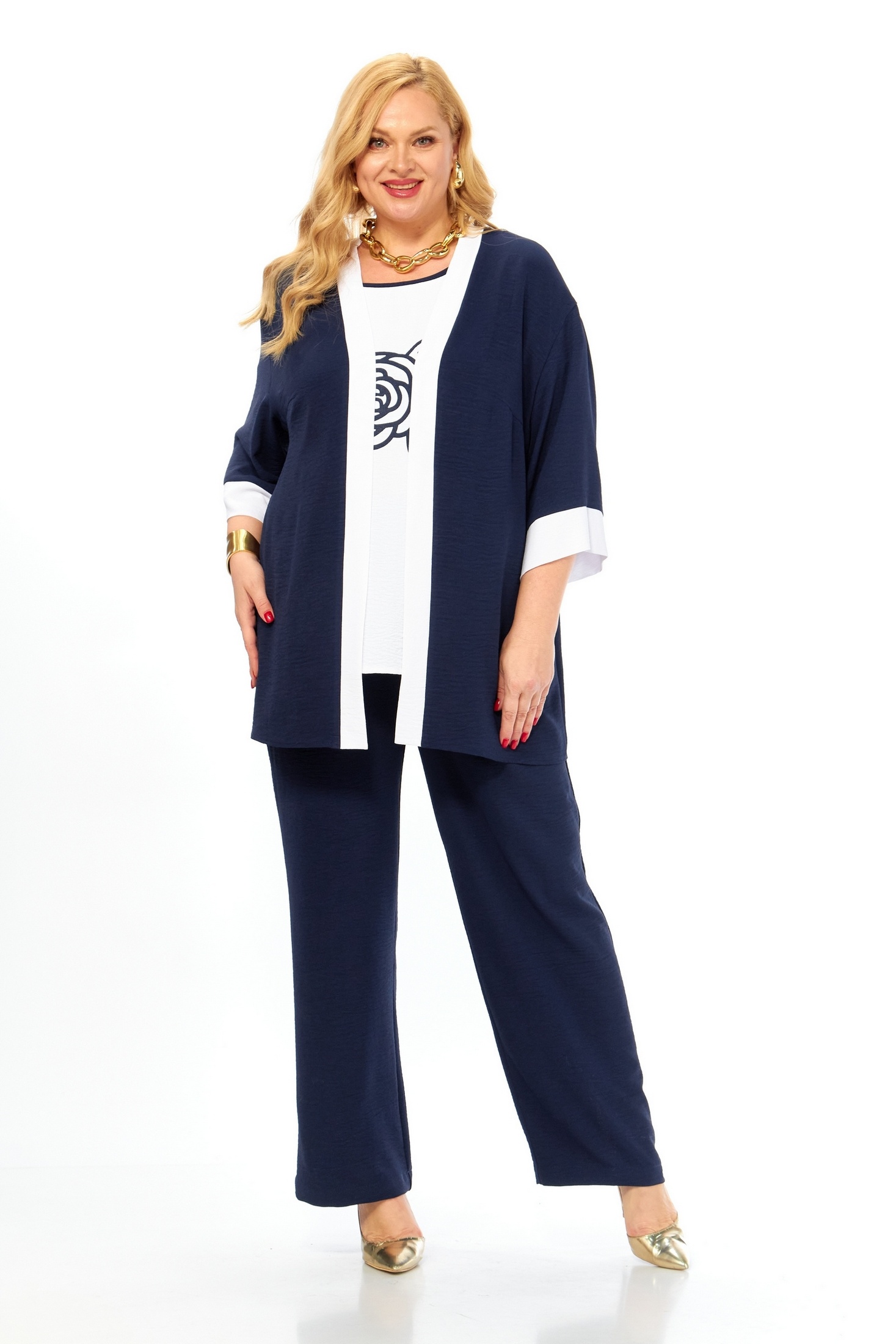 Костюм брючный 312 Grace for you очаровывает удобством и стилем. Коллекция бренда Grace for you предлагает универсальный комплект для повседневного использования. Благодаря сочетанию вискозы, полиэстера и лайкры, костюм обеспечивает комфорт и легкость в носке. Кардиган свободного силуэта с рукавами ¾ и топ с дизайнерской печатью создают необычный облик. Брюки с наклонными карманами и поясом на резинке подчеркивают практичность. Темно-синий цвет делает костюм идеальным выбором для прохладных летних или весенних дней, а также подойдет для офиса или прогулок. Свободный крой и натуральные материалы придают комплексу легкость и свободу движений.
