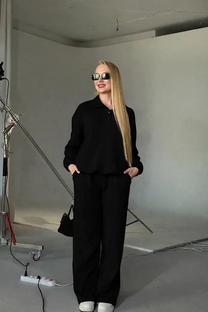Костюм брючный 25ICY092Ч чёрный ICY Street — это современный трикотажный ансамбль, идеально подходящий для повседневного использования. Коллекция бренда ICY Street представляет модель, выполненную из мягкого трикотажного полотна с содержанием 85% хлопка, что обеспечивает комфорт и устойчивость к деформации. Джемпер oversize с двушовным рукавом и планкой на три кнопки формирует модный образ, а регулируемая посадка достигается благодаря шнуру с фиксаторами. Брюки прямого кроя со стрелками и удобными карманами подчеркивают современный стиль. Чёрный цвет и фасон oversize делают костюм универсальным выбором для осенне-зимнего сезона.