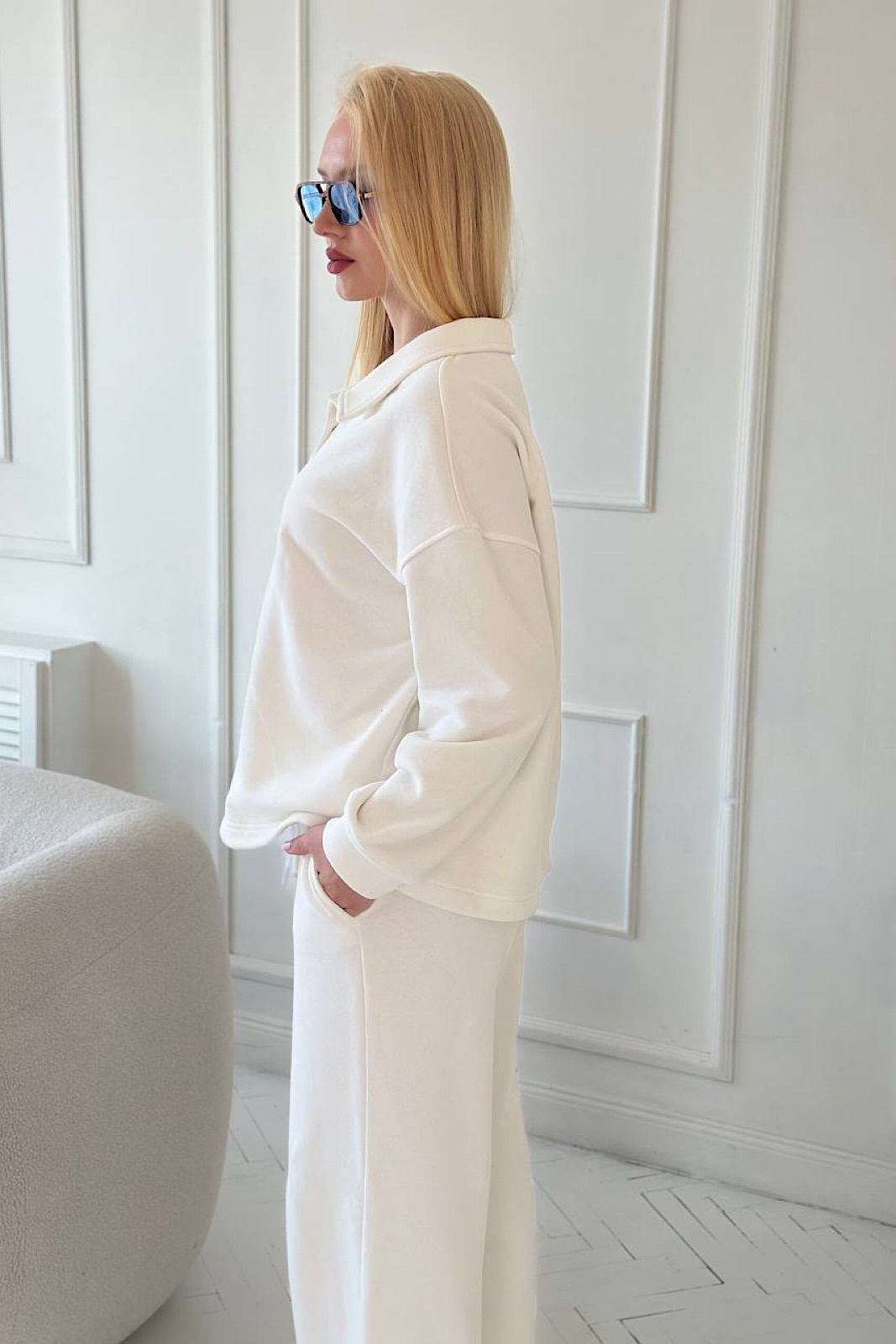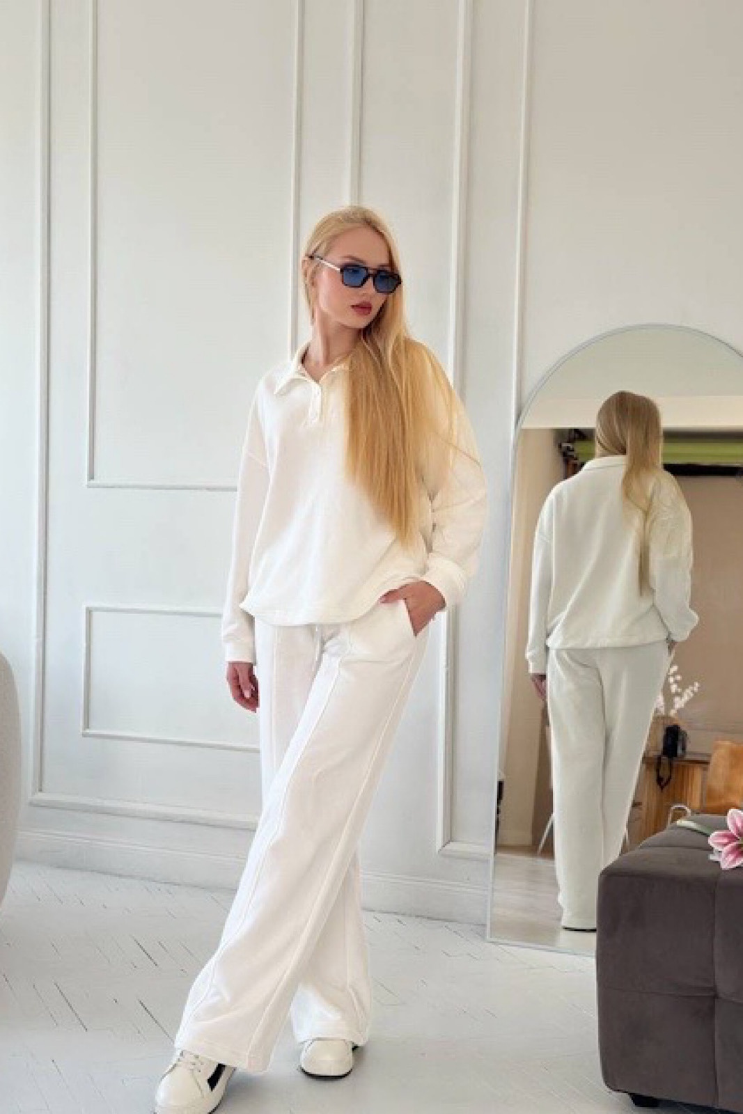 Костюм брючный 25ICY092М молочный ICY Street — это идеальное сочетание стиля и комфорта. Коллекция бренда ICY Street представляет трикотажный костюм из мягкого материала с высоким содержанием хлопка. Ткань обеспечивает приятные тактильные ощущения и стабильность формы. Джемпер oversize с воротником стойка-отложным и центральной застёжкой из трёх кнопок создаёт современный расслабленный образ. Брюки прямого кроя со стрелками и комфортным поясом с резинкой подчёркивают линию силуэта. Карманы в боковых швах и регулируемый объём низа добавляют функциональности. Костюм подходит для весенне-летнего сезона и станет отличным выбором для повседневного гардероба. Молочный цвет подчёркивает его стиль и универсальность.