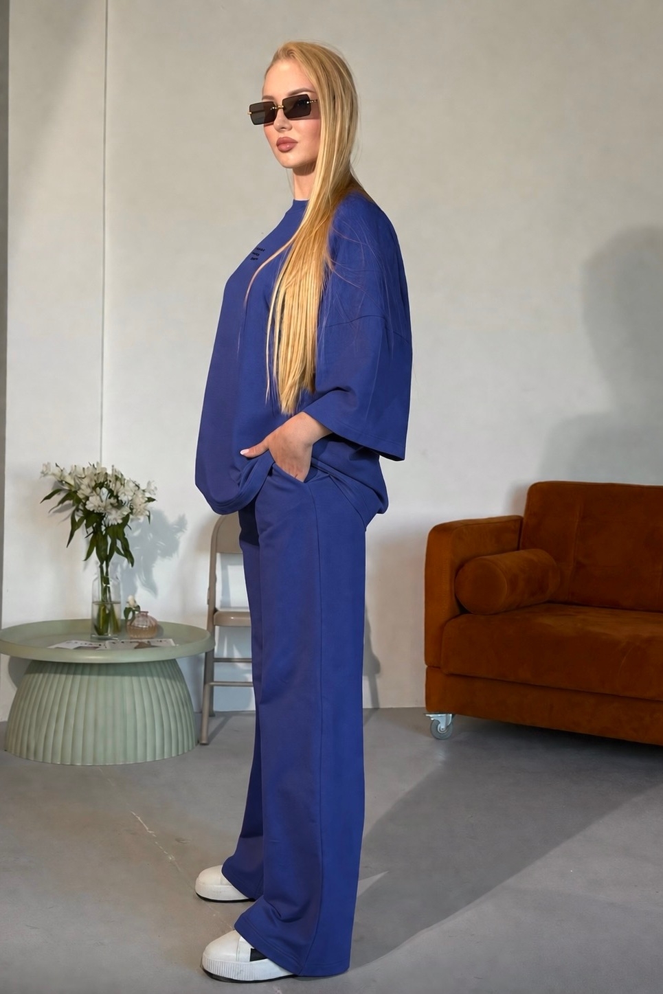 - Голубые брючные костюмы