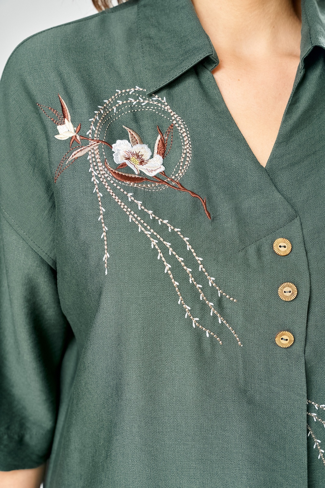 Костюм брючный 3460 Jurimex — универсальное решение для стильного гардероба. Коллекция бренда Jurimex выполнена из ткани с эффектом крэша, сочетая в себе изящную вышивку и классический силуэт. Блуза свободного кроя с V-образной горловиной и стояче-отложным воротником добавляет стильности и комфорта, а эластичная кулиска на спинке подчеркивает линию талии. Длина блузы по спинке составляет 75 см, а плечо с рукавом — 55 см. Брюки прямого кроя с эластичным поясом и карманами в боковых швах обеспечивают комфорт и удобство. Общая длина брюк — 108 см. Этот костюм подходит для весны и осени, он будет незаменим как для деловых встреч, так и для повседневной носки. Насыщенный зеленый цвет добавит свежести в ваш гардероб.