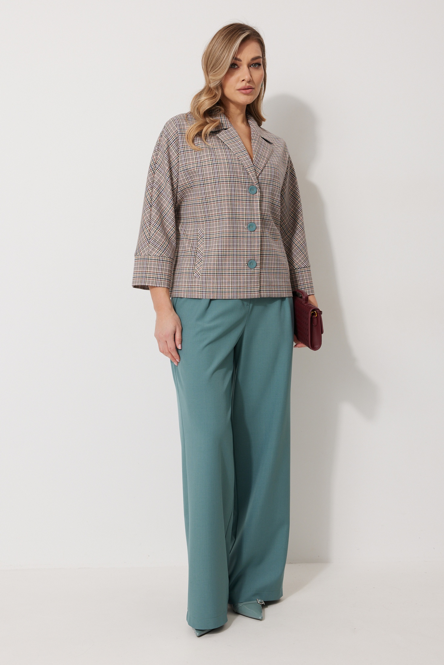 - Брючные костюмы больших размеров с рукавом 3/4