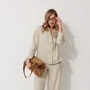 Длина спинки жакета 81 см, длина рукава 57 см, длина брюк по боковому шву 109 см.